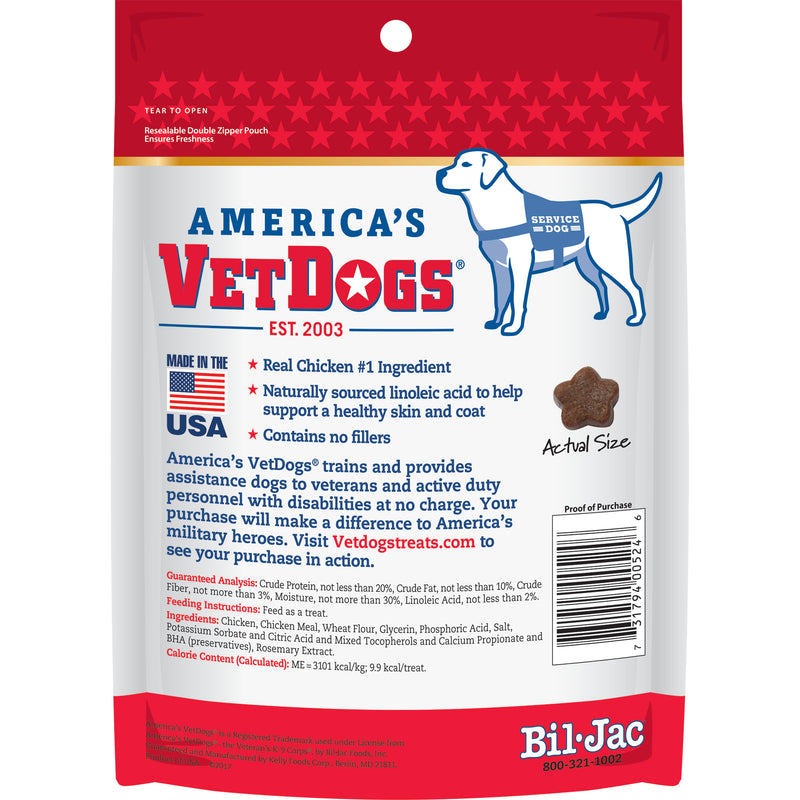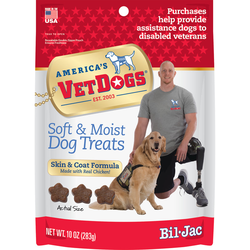 Shop / Unknown Type / Bil-Jac 10 oz America's VetDog Dry Dog Treat Bil-Jac 10 oz America's VetDog Dry Dog Treat Bil-Jac 10oz $8.99 10oz Purchase Options Free In-Store Pick Up Not Available Save 10% on orders $49+ Set your store for inventory and store pickup details Zip Code Search Same-day Delivery* No minimum charge for delivery orders. *Order before 2pm and have it delivered today. Orders placed after 2pm will be delivered the next day. Must be inside delivery radius. Zip Code Unfortunately delivery is not available to this address. In order to ensure the best availability accuracy, changing your selected store will remove all items from your cart. You will need to re-add these items with your newly selected store if you choose to continue. Continue Cancel Ship it to Me Quantity Add To Cart Feeding guide disclaimer ✕ Feeding guides provide a starting point for the amount of food to give your pet each day. We recommend that you keep your pet in ideal body condition and not allow them to become overweight. The amount of food your pet needs can vary based on age, activity level or other food and treats given, so be sure to work with your veterinarian to determine an appropriate weight for your pet, and to make any necessary adjustments to their feeding. Information America's VetDogs Treats are delicious treats made from real chicken. These star-shaped treats are specially formulated to help keep your dog's skin and coat, soft and shiny. Treat purchases of America’s VetDogs Treats helps to support America’s military heroes and first responders with disabilities. Ingredients Chicken, Chicken Meal, Wheat Flour, Glycerin, Phosphoric Acid, Salt, Potassium Sorbate and Citric Acid and Calcium Propionate and Mixed Tocopherols and BHA (preservatives), Rosemary Extract, Green Tea Extract, Spearmint Extract. Guaranteed Analysis Crude Protein, not less than 20%, Crude Fat, not less than 10%, Crude Fiber, not more than 3%, Moisture, not more than 30%, Linoleic Acid, not less than 2%. Customers also liked Customer Reviews