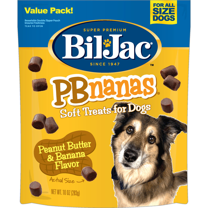 Shop / Unknown Type / Bil-Jac 10 oz PBnanas Dry Dog Treat Bil-Jac 10 oz PBnanas Dry Dog Treat Bil-Jac 10oz $7.99 10oz Purchase Options Free In-Store Pick Up Not Available Save 10% on orders $49+ Set your store for inventory and store pickup details Zip Code Search Same-day Delivery* No minimum charge for delivery orders. *Order before 2pm and have it delivered today. Orders placed after 2pm will be delivered the next day. Must be inside delivery radius. Zip Code Unfortunately delivery is not available to this address. In order to ensure the best availability accuracy, changing your selected store will remove all items from your cart. You will need to re-add these items with your newly selected store if you choose to continue. Continue Cancel Ship it to Me Quantity Add To Cart Feeding guide disclaimer ✕ Feeding guides provide a starting point for the amount of food to give your pet each day. We recommend that you keep your pet in ideal body condition and not allow them to become overweight. The amount of food your pet needs can vary based on age, activity level or other food and treats given, so be sure to work with your veterinarian to determine an appropriate weight for your pet, and to make any necessary adjustments to their feeding. Information Bil-Jac PBnanas dog treats are soft & moist and made for dogs of all sizes. Real chicken is the #1 ingredient, with the yummy flavor of peanut butter and banana. A fun way to add variety to your dog's day! Ingredients Chicken, Chicken Liver, Chicken Meal, Wheat Flour, Glycerin, Phosphoric Acid, Salt, Potassium Sorbate and Citric Acid and Calcium Propionate and Mixed Tocopherols and BHA (preservatives), Natural Peanut Butter and Banana Flavors, Rosemary Extract, Green Tea Extract, Spearmint Extract. Guaranteed Analysis Crude Protein, not less than 25%, Crude Fat, not less than 10%, Crude Fiber, not more than 2%, Moisture, not more than 30% Customers also liked Customer Reviews