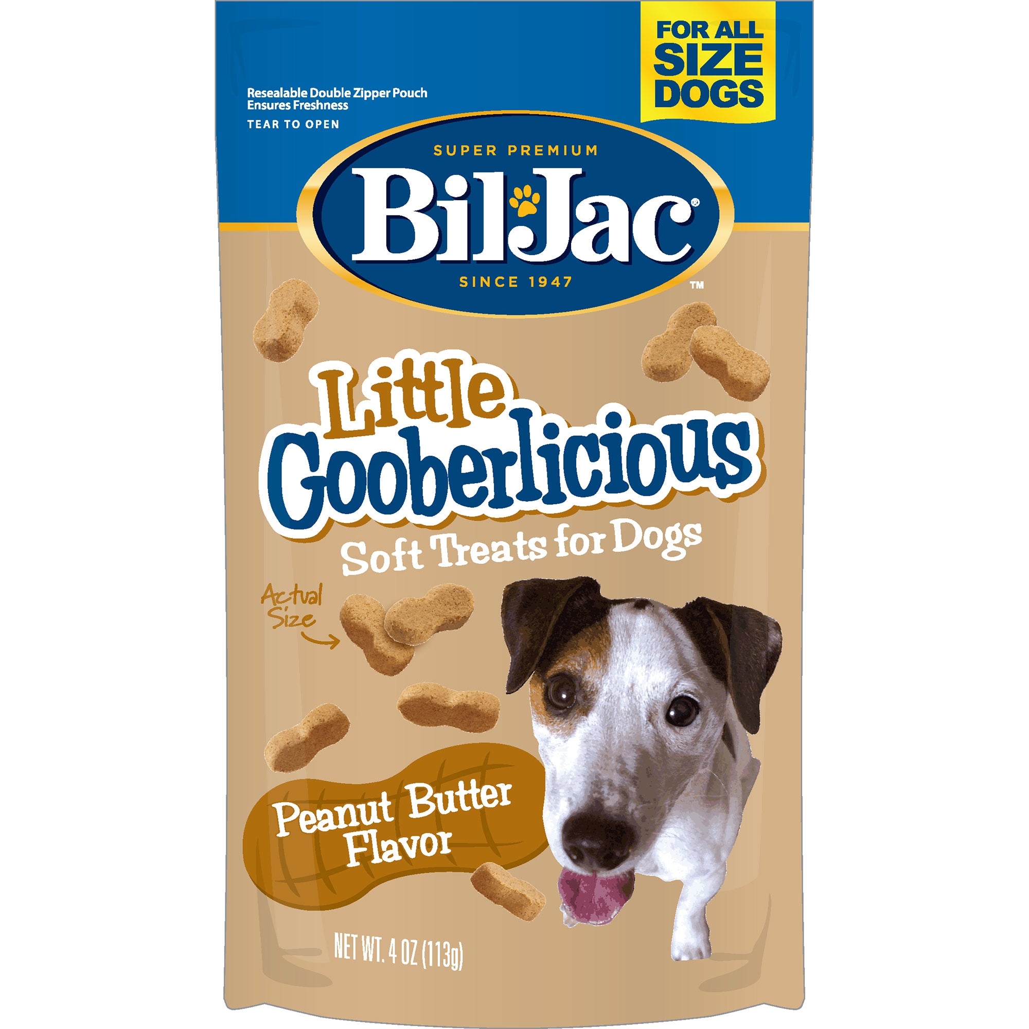 Shop / Unknown Type / Bil-Jac 4 oz Little Gooberlicious Dry Dog Treat Bil-Jac 4 oz Little Gooberlicious Dry Dog Treat Bil-Jac 4oz $4.99 Save $1Discount will apply in cart 4oz Purchase Options Free In-Store Pick Up Not Available Save 10% on orders $49+ Set your store for inventory and store pickup details Zip Code Search Same-day Delivery* No minimum charge for delivery orders. *Order before 2pm and have it delivered today. Orders placed after 2pm will be delivered the next day. Must be inside delivery radius. Zip Code Unfortunately delivery is not available to this address. In order to ensure the best availability accuracy, changing your selected store will remove all items from your cart. You will need to re-add these items with your newly selected store if you choose to continue. Continue Cancel Ship it to Me Quantity Add To Cart Feeding guide disclaimer ✕ Feeding guides provide a starting point for the amount of food to give your pet each day. We recommend that you keep your pet in ideal body condition and not allow them to become overweight. The amount of food your pet needs can vary based on age, activity level or other food and treats given, so be sure to work with your veterinarian to determine an appropriate weight for your pet, and to make any necessary adjustments to their feeding. Information Great for training, these Bil-Jac Little Gooberlicious peanut-butter flavored dog treats are a delicious everyday snack. Little Gooberlicious Dog Treats are soft and nutty flavored mini treats your best friend will love. They are the perfect size for training, a reward, or just to show how much you love your best friend. Ingredients Chicken Liver, Chicken, Chicken Meal, Wheat Flour, Glycerin, Phosphoric Acid, Salt, Potassium Sorbate and Citric Acid and Calcium Propionate and Mixed Tocopherols and BHA (preservatives), Titanium Dioxide Color, Natural Peanut Butter Flavor, Rosemary Extract, Green Tea Extract, Spearmint Extract. Guaranteed Analysis Crude Protein, not less than 24%, Crude Fat, not less than 10%, Crude Fiber, not more than 2%, Moisture, not more than 30% Customers also liked Customer Reviews