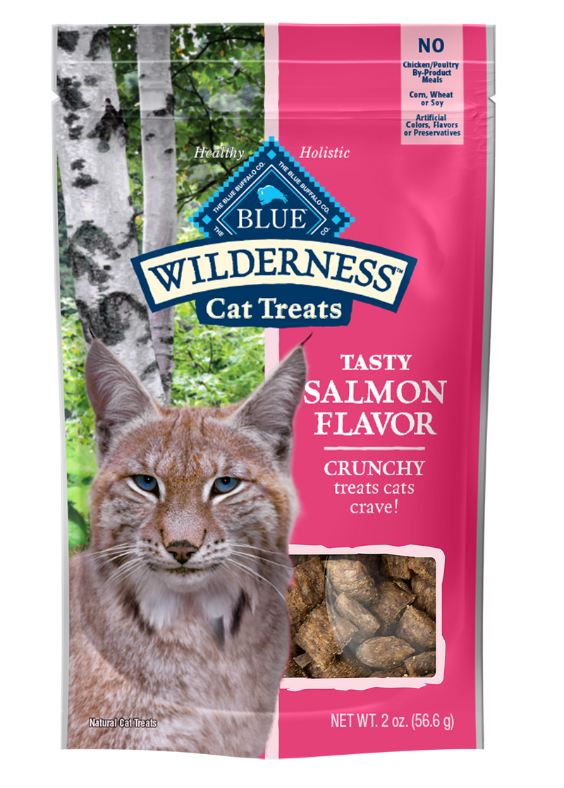 Shop / Unknown Type / Blue Buffalo Wilderness Crunchy Cat Treats, Salmon 2 oz. Bag Blue Buffalo Wilderness Crunchy Cat Treats, Salmon 2 oz. Bag Blue Buffalo 2 oz. $1.88 2 oz. Purchase Options Free In-Store Pick Up Not Available Save 10% on orders $49+ Set your store for inventory and store pickup details Zip Code Search Same-day Delivery* No minimum charge for delivery orders. *Order before 2pm and have it delivered today. Orders placed after 2pm will be delivered the next day. Must be inside delivery radius. Zip Code Unfortunately delivery is not available to this address. In order to ensure the best availability accuracy, changing your selected store will remove all items from your cart. You will need to re-add these items with your newly selected store if you choose to continue. Continue Cancel Ship it to Me Quantity Add To Cart Feeding guide disclaimer ✕ Feeding guides provide a starting point for the amount of food to give your pet each day. We recommend that you keep your pet in ideal body condition and not allow them to become overweight. The amount of food your pet needs can vary based on age, activity level or other food and treats given, so be sure to work with your veterinarian to determine an appropriate weight for your pet, and to make any necessary adjustments to their feeding. Information Reward your cat with a scrumptious, meat-rich treat inspired by her wild ancestors. BLUE Wilderness Crunchy Cat Treats cater to your cat’s natural cravings for real meat by starting with more of the tasty, high-quality protein cats love. Oven baked for a healthy crunch, these grain-free treats will truly satisfy your cat’s wild side. And with real meat first and NO poultry by-product meals, these Blue Buffalo cat treats feature the ingredients you'll feel good about giving. Ingredients Salmon, Chicken Meal, Potato Starch, Peas, Brewers Dried Yeast, Chicken Fat, Natural Flavor, Citric Acid, Potassium Chloride, preserved with Mixed Tocopherols, Oil of Rosemary. Guaranteed Analysis Crude Protein: 28.0% min. Crude Fat: 12.0% min. Crude Fiber: 4.0% max. Moisture: 10.0% max. Customers also liked Customer Reviews