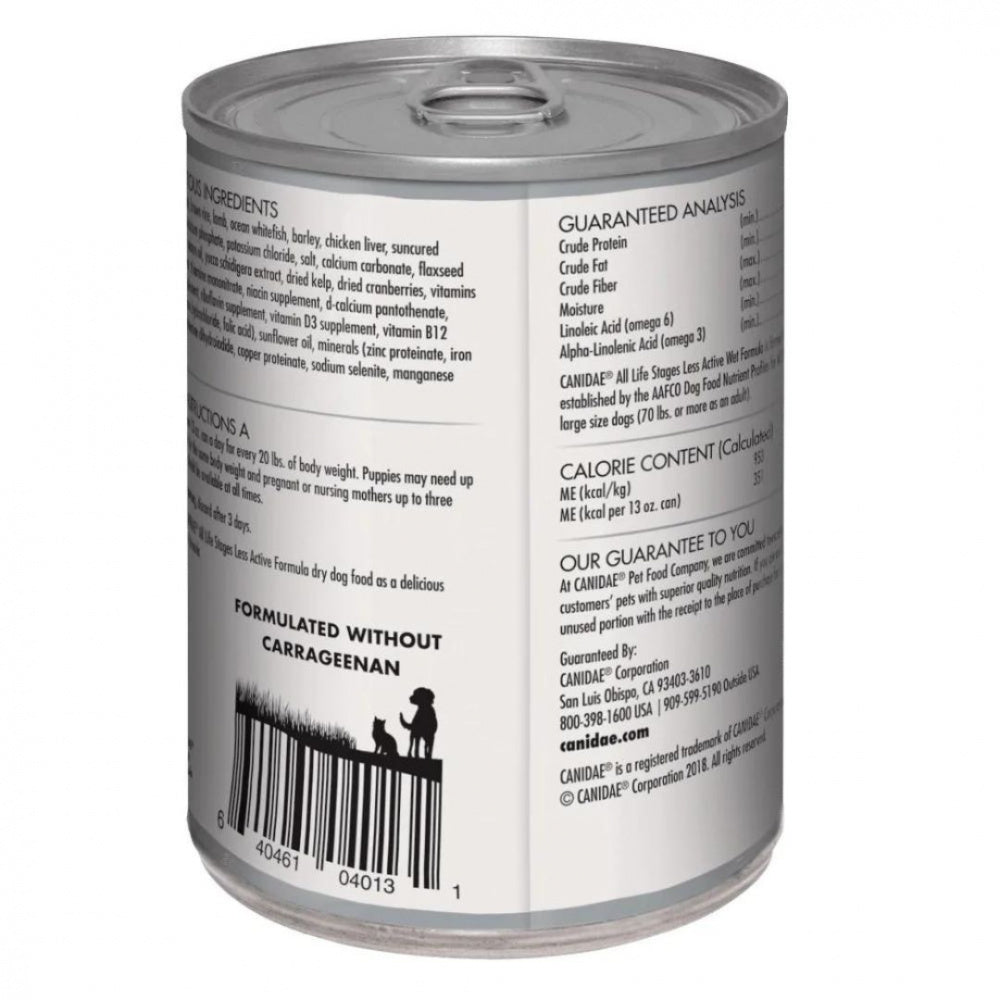Shop / Unknown Type / Canidae Platinum Formula for Seniors & Over Weight Dogs Canned Dog Food Canidae Platinum Formula for Seniors & Over Weight Dogs Canned Dog Food Canidae Weight: 13 oz, case of 12 $47.99 13-oz, case of 12 Purchase Options Free In-Store Pick Up Not Available Save 10% on orders $49+ Set your store for inventory and store pickup details Zip Code Search Same-day Delivery* No minimum charge for delivery orders. *Order before 2pm and have it delivered today. Orders placed after 2pm will be delivered the next day. Must be inside delivery radius. Zip Code Unfortunately delivery is not available to this address. In order to ensure the best availability accuracy, changing your selected store will remove all items from your cart. You will need to re-add these items with your newly selected store if you choose to continue. Continue Cancel Ship it to Me Quantity Add To Cart Feeding guide disclaimer ✕ Feeding guides provide a starting point for the amount of food to give your pet each day. We recommend that you keep your pet in ideal body condition and not allow them to become overweight. The amount of food your pet needs can vary based on age, activity level or other food and treats given, so be sure to work with your veterinarian to determine an appropriate weight for your pet, and to make any necessary adjustments to their feeding. Information CANIDAE® All Life Stages wet food recipes are formulated for all dogs. That makes mealtimes for multiple dog households much easier than dealing with multiple cans of different foods. Single dog households will also enjoy the benefits of one can for all dogs—no more guessing or switching based on your pet’s age, breed, or size. They’re slow-cooked in broth for great tasting nutrition your pets will love. Choose from a variety of flavors in convenient serving sizes. Why We Love It Chicken, lamb & fish for optimum protein Premium ingredients for great taste Made in the USA About CanidaeCANIDAE® has been making great foods for our pets and yours since 1996. Working with farmers and suppliers for the best ingredients, establishing our Texas cookery, and taking the first steps at CANIDAE® Farms toward getting involved in the growing of some of the ingredients we use are all important parts of our commitment to pets and their people. CANIDAE® remains an independently owned brand pet lovers can trust to provide innovative and authentic foods for the beloved dogs and cats that enrich our lives in so many ways. Try one of our 5-star rated, top reviewed pet food brands today! Ingredients Chicken, chicken broth, brown rice, lamb, ocean whitefish, barley, chicken liver, suncured alfalfa, agar-agar, tricalcium phosphate, potassium chloride, salt, calcium carbonate, flaxseed oil, choline chloride, salmon oil, yucca schidigera extract, dried kelp, dried cranberries, vitamins (vitamin E supplement, thiamine mononitrate, niacin supplement, d-calcium pantothenate, biotin, vitamin A supplement, riboflavin supplement, vitamin D3 supplement, vitamin B12 supplement, pyridoxine hydrochloride, folic acid), sunflower oil, minerals (zinc proteinate, iron proteinate, ethylenediamine dihydroiodide, copper proteinate, sodium selenite, manganese proteinate). Guaranteed Analysis Nutrient Guaranteed Units Crude Protein 6.0% min Crude Fat 4.5% min Crude Fiber 2.0% max Moisture 78.0% max Linoleic Acid 1.0% min Alpha Linolenic Acid (Omega 3) 0.2% min Customers also liked Customer Reviews