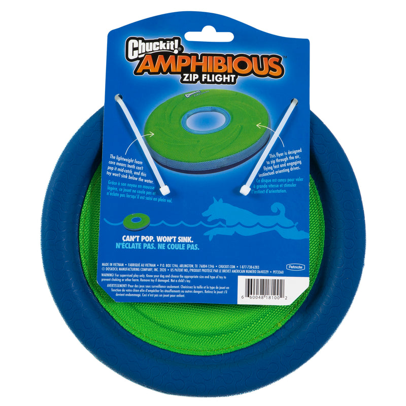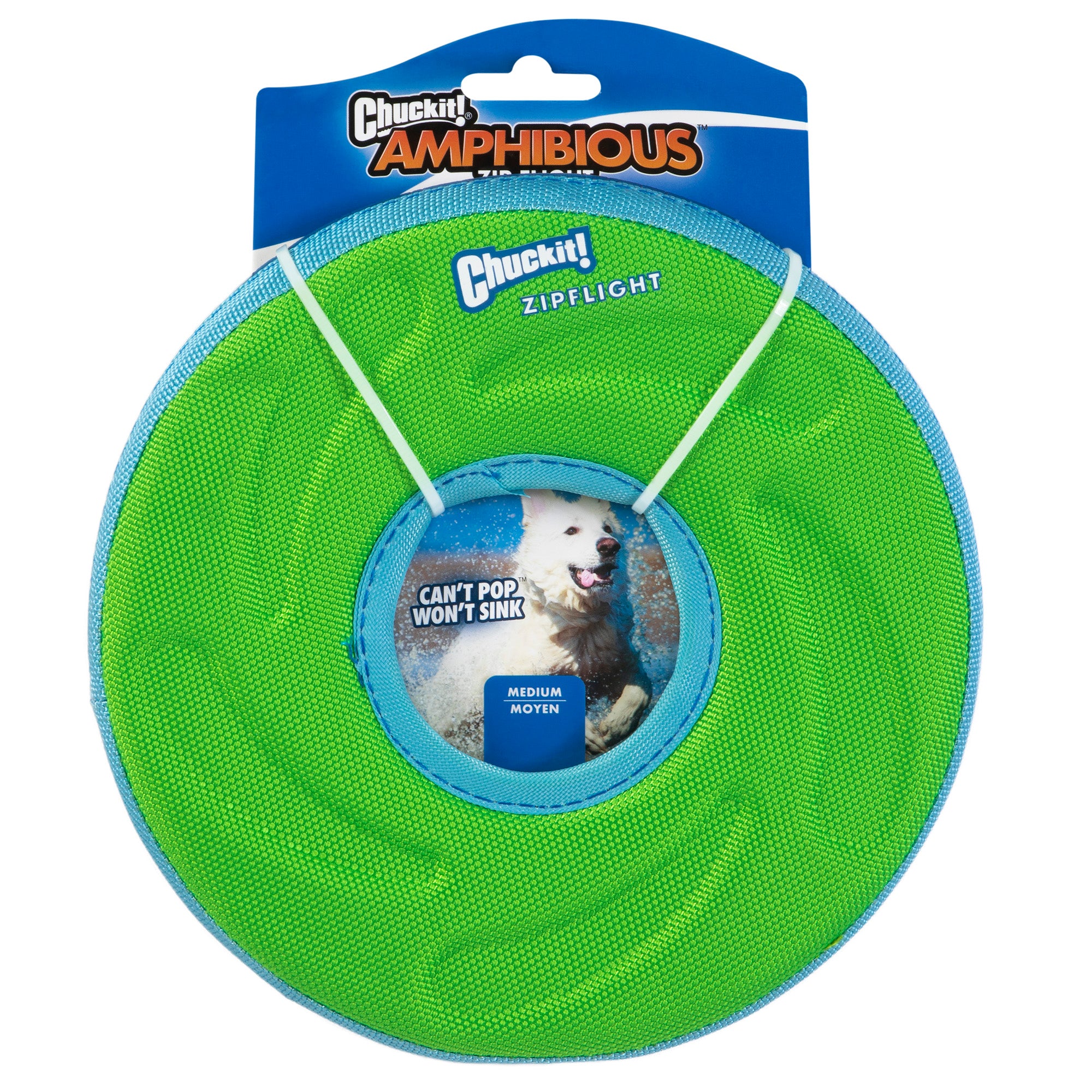 Shop / Unknown Type / Chuckit! Amphibious Zipflight Dog Toy Chuckit! Amphibious Zipflight Dog Toy Petmate Medium $18.99 Medium Purchase Options Free In-Store Pick Up Not Available Save 10% on orders $49+ Set your store for inventory and store pickup details Zip Code Search Same-day Delivery* No minimum charge for delivery orders. *Order before 2pm and have it delivered today. Orders placed after 2pm will be delivered the next day. Must be inside delivery radius. Zip Code Unfortunately delivery is not available to this address. In order to ensure the best availability accuracy, changing your selected store will remove all items from your cart. You will need to re-add these items with your newly selected store if you choose to continue. Continue Cancel Ship it to Me Quantity Add To Cart Information In water; on land; or in the sky; the Chuckit!® Amphibious ZipFlight® fetch toy is designed for exceptional performance and visibility. It's durable; pliable; and it floats! The lightweight is perfect for an easy catch that is easy on your dog's mouth. Floats through the air for a fast flight! Unsinkable and floats high on the water. Soft rugged construction is easy to clean. Great for the backyard or the water. Bright color gives increased visibility and helps to prevent the toy from getting lost. The aerodynamic shape is perfect for long-distance games of fetch. Ships in assorted colors. PRODUCT NOTE: Choose the appropriate size and type of toy to prevent choking or other harm. Every dog plays differently with its toys. No dog toy is truly indestructible. It's always a good idea to keep a close watch on your dog to keep your dog safe. Always remove the toy from being played with if pieces break off. Not a child's toy. Colors vary - let us choose for you! Customers also liked Customer Reviews