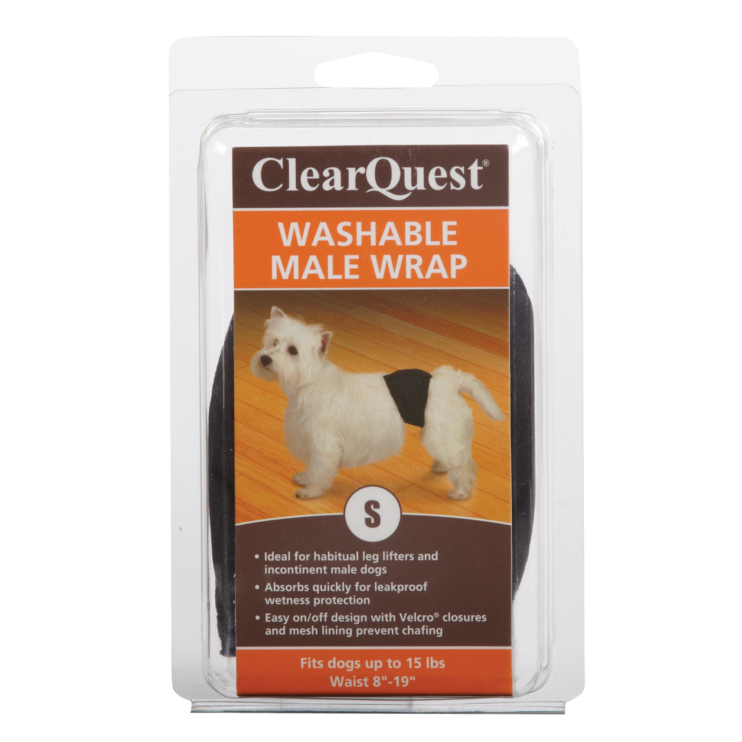 Shop / Unknown Type / Clear Quest Washable Male Wrap Small Black Clear Quest Washable Male Wrap Small Black Clear Quest Small $13.99 Small Purchase Options Free In-Store Pick Up Not Available Save 10% on orders $49+ Set your store for inventory and store pickup details Zip Code Search Same-day Delivery* No minimum charge for delivery orders. *Order before 2pm and have it delivered today. Orders placed after 2pm will be delivered the next day. Must be inside delivery radius. Zip Code Unfortunately delivery is not available to this address. In order to ensure the best availability accuracy, changing your selected store will remove all items from your cart. You will need to re-add these items with your newly selected store if you choose to continue. Continue Cancel Ship it to Me Quantity Add To Cart Information ClearQuest® Washable Male Wraps are leakproof protection for incontinent male dogs and habitual leg lifters. • Easy on/off design with hook and loop closures and mesh lining that prevents chafing • Protects carpets, furniture, and upholstery • Ideal for habitual leg lifters and incontinent male dogs • Absorbs quickly for leak-proof wetness protection Customers also liked Customer Reviews