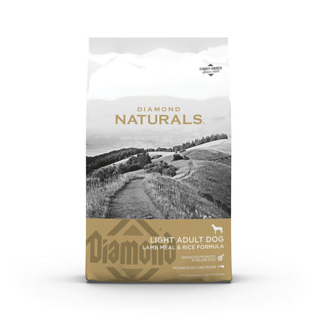 Shop / Unknown Type / Diamond Naturals Light Adult Dog Lamb Meal & Rice Dry Dog Food Formula Diamond Naturals Light Adult Dog Lamb Meal & Rice Dry Dog Food Formula Diamond 15lb $32.99 15lb Purchase Options Free In-Store Pick Up Not Available Save 10% on orders $49+ Set your store for inventory and store pickup details Zip Code Search Same-day Delivery* No minimum charge for delivery orders. *Order before 2pm and have it delivered today. Orders placed after 2pm will be delivered the next day. Must be inside delivery radius. Zip Code Unfortunately delivery is not available to this address. In order to ensure the best availability accuracy, changing your selected store will remove all items from your cart. You will need to re-add these items with your newly selected store if you choose to continue. Continue Cancel Ship it to Me Quantity Add To Cart Feeding guide disclaimer ✕ Feeding guides provide a starting point for the amount of food to give your pet each day. We recommend that you keep your pet in ideal body condition and not allow them to become overweight. The amount of food your pet needs can vary based on age, activity level or other food and treats given, so be sure to work with your veterinarian to determine an appropriate weight for your pet, and to make any necessary adjustments to their feeding. Information Diamond Naturals Light Adult Dog Lamb Meal & Rice Formula is formulated for your overweight or less active adult dog. With 20% fewer calories than the Diamond Naturals Adult Dog Lamb Meal & Rice Formula and added glucosamine, chondroitin and L-Carnitine, this formula is a great choice to help your dog reach and maintain a healthy body weight while also receiving adequate nutrition. Ingredients Lamb meal, whole grain brown rice, oatmeal, cracked pearled barley, ground white rice, grain sorghum, ground Miscanthus grass, millet, dried yeast, chicken fat (preserved with mixed tocopherols), natural flavor, flaxseed, potassium chloride, DL-Methionine, choline chloride, taurine, glucosamine hydrochloride, dried chicory root, L-Carnitine, kale, chia seed, pumpkin, blueberries, oranges, quinoa, dried kelp, coconut, spinach, carrots, papaya, yucca schidigera extract, dried Lactobacillus plantarum fermentation product, dried Bacillus subtilis fermentation product, dried Lactobacillus acidophilus fermentation product, dried Enterococcus faecium fermentation product, dried Bifidobacterium animalis fermentation product, vitamin E supplement, beta carotene, chondroitin sulfate, iron proteinate, zinc proteinate, copper proteinate, ferrous sulfate, zinc sulfate, manganese sulfate, copper sulfate, potassium iodide, thiamine mononitrate, manganese proteinate, ascorbic acid, vitamin A supplement, biotin, niacin, calcium pantothenate, sodium selenite, pyridoxine hydrochloride, vitamin B12 supplement, riboflavin, vitamin D3 supplement, folic acid.Contains a source of live (viable), naturally occurring microorganisms.The facility in which this food is made also makes food that may contain other ingredients. Guaranteed Analysis Crude Protein 18.0% MinimumCrude Fat 6.0% MinimumCrude Fiber 8.0% MaximumMoisture 10.0% MaximumZinc 150 mg/kg MinimumSelenium 0.35 mg/kg MinimumVitamin A 10,000 IU/kg MinimumVitamin E 150 IU/kg MinimumTaurine* 0.12% MinimumL-Carnitine* 500 mg/kg MinimumOmega-6 Fatty Acids* 1.25% MinimumOmega-3 Fatty Acids* 0.25% MinimumGlucosamine* 750 mg/kg MinimumChondroitin Sulfate* 250 mg/kg MinimumTotal Microorganisms* Not Less Than 80,000,000 CFU/lb(Lactobacillus plantarum, Bacillus subtilis, Lactobacillus acidophilus, Enterococcus faecium, Bifidobacterium animalis) *Not recognized as an essential nutrient by the AAFCO Dog Food Nutrient Profiles." Customers also liked Customer Reviews