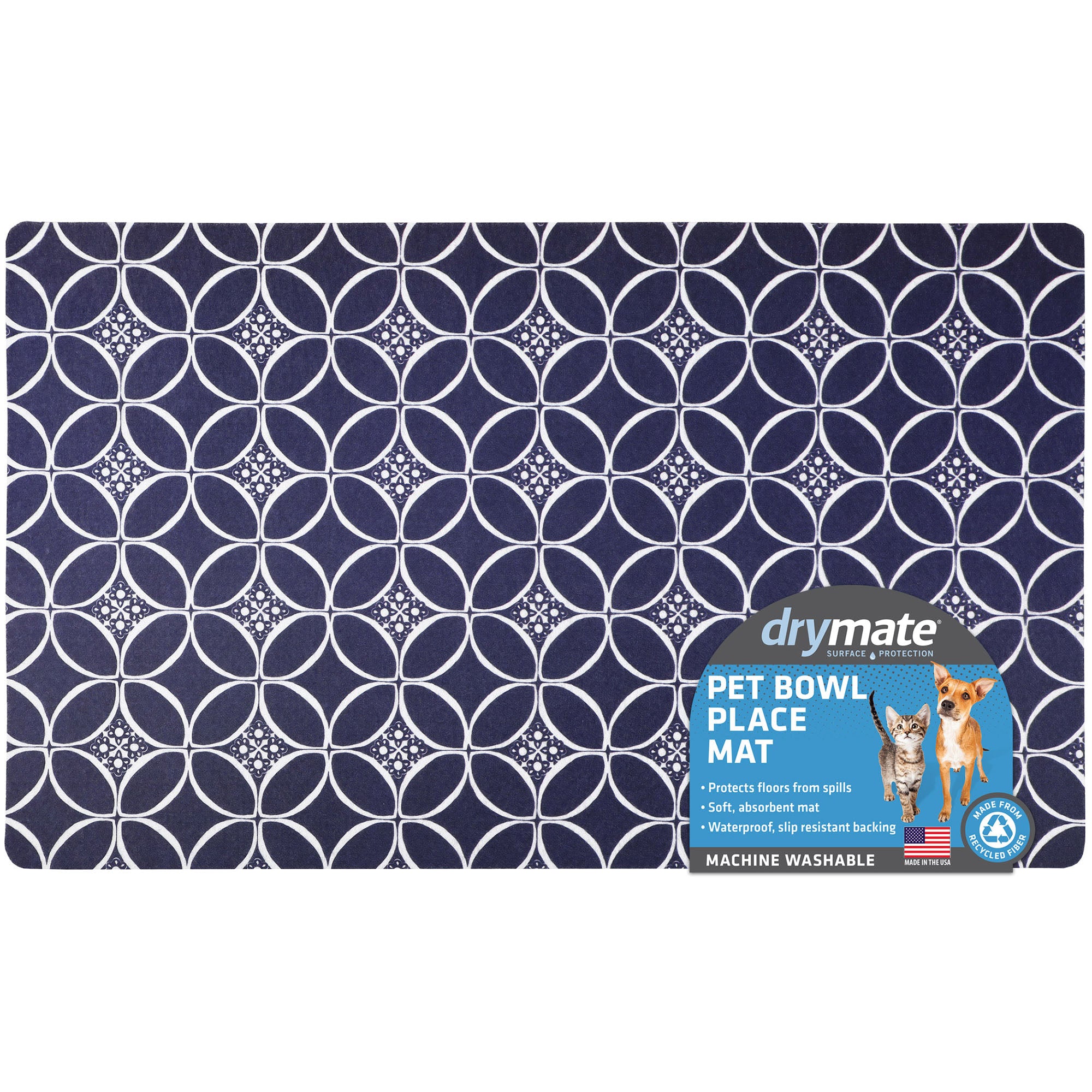 Shop / Unknown Type / Drymate Pet Placemat, Indigo/Navy/White Drymate Pet Placemat, Indigo/Navy/White RPM Drymate 12" x 20" $9.99 12" x 20" Purchase Options Free In-Store Pick Up Not Available Save 10% on orders $49+ Set your store for inventory and store pickup details Zip Code Search Same-day Delivery* No minimum charge for delivery orders. *Order before 2pm and have it delivered today. Orders placed after 2pm will be delivered the next day. Must be inside delivery radius. Zip Code Unfortunately delivery is not available to this address. In order to ensure the best availability accuracy, changing your selected store will remove all items from your cart. You will need to re-add these items with your newly selected store if you choose to continue. Continue Cancel Ship it to Me Quantity Add To Cart Information Spruce up your pet's feeding station and protect your floor with a Drymate® Placemat. The absorbent top layer contains spills while the waterproof backing prevents them from leaking through to your floor. A slip-resistant backing keeps the mat in place, reducing the chance of tipped bowls during a frenzied feeding. These placemats come in a variety of styles and colors allowing you to choose a design that matches your décor or your pet’s personality. Cleaning made easy! When your placemat gets dirty simply machine wash warm separately (or hand wash), and hang to dry. Made from over 50% recycled fiber and proudly made in the USA. Customers also liked Customer Reviews