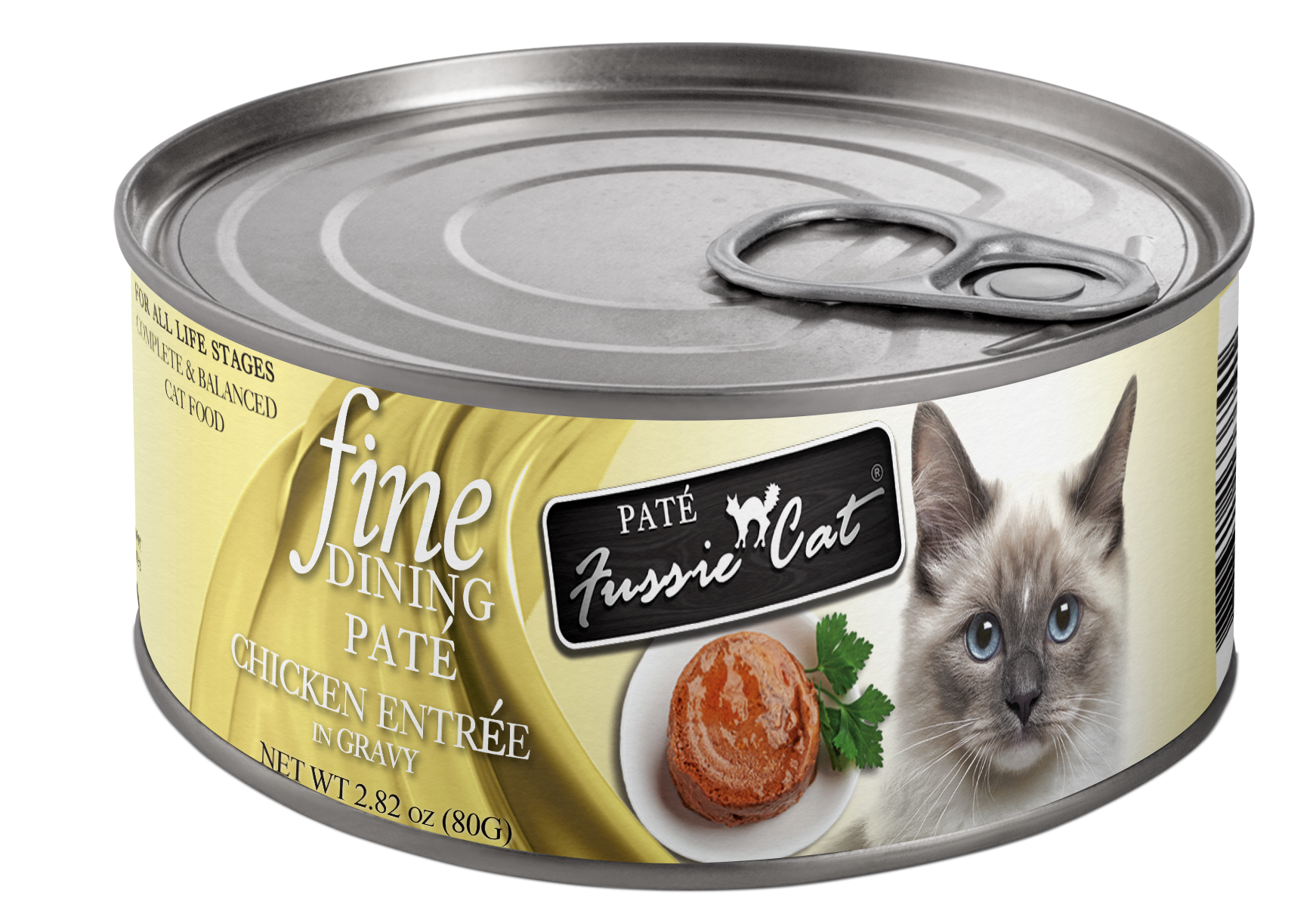 Shop / Unknown Type / Fussie Cat Fine Dining Pate Chicken Entree Wet Cat Food, 2.82oz Fussie Cat Fine Dining Pate Chicken Entree Wet Cat Food, 2.82oz Fussie Cat 2.82oz $1 $1.19 2.82oz Purchase Options Free In-Store Pick Up Not Available Save 10% on orders $49+ Set your store for inventory and store pickup details Zip Code Search Same-day Delivery* No minimum charge for delivery orders. *Order before 2pm and have it delivered today. Orders placed after 2pm will be delivered the next day. Must be inside delivery radius. Zip Code Unfortunately delivery is not available to this address. In order to ensure the best availability accuracy, changing your selected store will remove all items from your cart. You will need to re-add these items with your newly selected store if you choose to continue. Continue Cancel Ship it to Me Quantity Add To Cart Feeding guide disclaimer ✕ Feeding guides provide a starting point for the amount of food to give your pet each day. We recommend that you keep your pet in ideal body condition and not allow them to become overweight. The amount of food your pet needs can vary based on age, activity level or other food and treats given, so be sure to work with your veterinarian to determine an appropriate weight for your pet, and to make any necessary adjustments to their feeding. Information Our pates incorporate high-quality ingredients like chicken, lamb, tuna, salmon, sardine, and mackerel and is a complete and balanced diet for all life stages. It’s high moisture content can help to promote daily hydration and is enhanced with vitamins and minerals to help aid overall well-being. Its so tasty that your cat cant resist. Ingredients Ingredients: Water Sufficient For Processing, Chicken, Tapioca Starch, Dried Egg Powder, Sunflower Oil, Natural Flavor, Tricalcium Phosphate, Sodium Tripolyphosphate, Minerals (Ferrous Sulfate, Zinc Oxide, Manganese Sulfate, Copper Glycine Complex, Sodium Selenite, Potassium Iodide), Magnesium Sulfate, Potassium Chloride, Fructooligosaccharide, Calcium Sulfate, Vitamins (Vitamin E Supplement, Thiamine Mononitrate, Niacin, Vitamin A Supplement, Pyridoxine Hydrochloride, d-Calcium Pantothenate, Riboflavin Supplement, Folic Acid, Vitamin B12 Supplement, Vitamin D3 Supplement, Biotin), Taurine, Choline Chloride. Guaranteed Analysis Crude Protein (min) 7.0%, Crude Fat (min) 4.0%, Crude Fiber (max) 1.0%, Moisture (max) 84.0% Customers also liked Customer Reviews