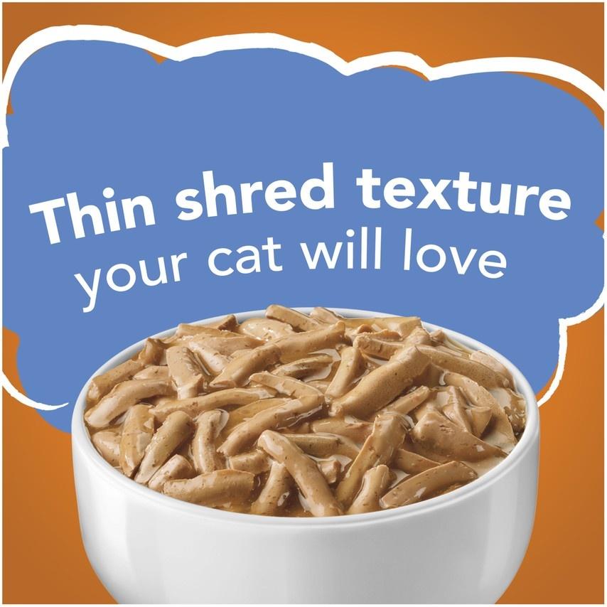 Shop / Unknown Type / Friskies Savory Shreds with Chicken in Gravy Canned Cat Food Friskies Savory Shreds with Chicken in Gravy Canned Cat Food Friskies Weight: 5.5 oz, case of 24 $21.99 5.5-oz, case of 24 Purchase Options Free In-Store Pick Up Not Available Save 10% on orders $49+ Set your store for inventory and store pickup details Zip Code Search Same-day Delivery* No minimum charge for delivery orders. *Order before 2pm and have it delivered today. Orders placed after 2pm will be delivered the next day. Must be inside delivery radius. Zip Code Unfortunately delivery is not available to this address. In order to ensure the best availability accuracy, changing your selected store will remove all items from your cart. You will need to re-add these items with your newly selected store if you choose to continue. Continue Cancel Ship it to Me Quantity Add To Cart Feeding guide disclaimer ✕ Feeding guides provide a starting point for the amount of food to give your pet each day. We recommend that you keep your pet in ideal body condition and not allow them to become overweight. The amount of food your pet needs can vary based on age, activity level or other food and treats given, so be sure to work with your veterinarian to determine an appropriate weight for your pet, and to make any necessary adjustments to their feeding. Information Satisfy your cat's cravings for classic taste with Purina Friskies Shreds With Chicken in Gravy wet cat food. Real chicken delivers the yummy poultry flavor cats love, and the savory gravy adds moisture and flavor for even more delectable goodness in every bite. Featuring a tender shredded texture, this wet cat food invites your cat to nibble to her heart's content. Feel good about giving her 100% complete and balanced nutrition for adult cats, and let her delight in the rich tastes that make this meal an instant favorite for the feline members of your family. Open a can of this tempting recipe, and let the mouthwatering aroma send a signal to your cat that something delicious is about to happen in her dish. With so much decadent flavor packed into every bite, this wet cat food satisfies her cravings and leaves her belly delightfully happy. Let your cat delight in every savory bite of Purina Friskies Shreds With Chicken in Gravy wet cat food. The tender shreds of real chicken offer a taste, texture and aroma that make every meal a feast for all her senses, and the essential vitamins and minerals in each serving let you know she's getting a high-quality meal. With a rich gravy, this recipe gives your feline friend a delicious reason to lick her dish clean after every feeding. Give your cat a daily dose of yum with this canned wet cat food, and bring even more palate-pleasing flavors to her dish when you alternate between this recipe and our Purina Friskies Tender & Crunchy Combo dry cat food. You take pride in giving your cat only the best, and this Purina Friskies Shreds recipe makes it easy to offer her the nourishing, high-quality meals she deserves. We strive to make quality the number one ingredient in everything we produce, and we formulate this recipe to meet or exceed industry standards for cat food. The result is a safe, delicious and nutritious meal you can feel confident about serving to her every day. Because you care about where your cat's food comes from, we manufacture this wet cat food in our Purina-owned U.S. facilities. Each batch undergoes rigorous checks for quality and safety throughout every step of the manufacturing process to give you added peace of mind every time you reach for a can. Sustainability is a core concept at Purina, and we hold to that commitment by seeking out eco-friendly packaging options and responsibly sourced ingredients. That's why this wet cat food variety is packaged in conveniently recyclable cans. Show your cat just how much you love her when you offer her Purina Friskies Shreds With Chicken in Gravy wet cat food. Ingredients Water, Chicken, Liver, Wheat Gluten, Turkey, Meat By-Products, Corn Starch-Modified, Soy Flour, Artificial And Natural Flavors, Tricalcium Phosphate, Minerals [Potassium Chloride, Zinc Sulfate, Ferrous Sulfate, Manganese Sulfate, Copper Sulfate, Potassium Iodide], Added Color, Salt, Choline Chloride, Taurine, Vitamins [Thiamine Mononitrate (Vitamin B-1), Vitamin E Supplement, Niacin (Vitamin B-3), Calcium Pantothenate (Vitamin B-5), Vitamin A Supplement, Menadione Sodium Bisulfite Complex (Vitamin K), Pyridoxine Hydrochloride (Vitamin B-6), Riboflavin Supplement (Vitamin B-2), Vitamin B-12 Supplement, Biotin (Vitamin B-7), Folic Acid (Vitamin B-9), Vitamin D-3 Supplement]. Guaranteed Analysis Nutrient Guaranteed Units Crude Protein 9.0% min Crude Fat 2.5% min Crude Fiber 1.0% max Moisture 82.0% max Ash 2.5% max Taurine 0.05% min Customers also liked Customer Reviews