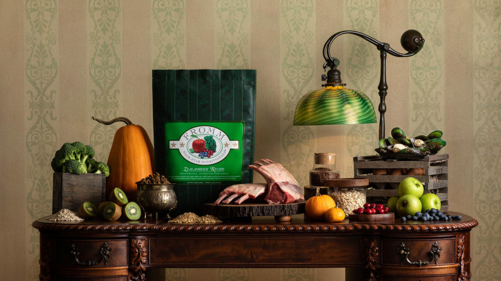 Shop / Unknown Type / Fromm Four Star Zealambder Recipe Dry Dog Food Fromm Four Star Zealambder Recipe Dry Dog Food Fromm $47.99 12 lb 26 lb 12-lb 26-lb Purchase Options Free In-Store Pick Up Not Available Save 10% on orders $49+ Set your store for inventory and store pickup details Zip Code Search Same-day Delivery* No minimum charge for delivery orders. *Order before 2pm and have it delivered today. Orders placed after 2pm will be delivered the next day. Must be inside delivery radius. Zip Code Unfortunately delivery is not available to this address. In order to ensure the best availability accuracy, changing your selected store will remove all items from your cart. You will need to re-add these items with your newly selected store if you choose to continue. Continue Cancel Ship it to Me Quantity Add To Cart Feeding guide disclaimer ✕ Feeding guides provide a starting point for the amount of food to give your pet each day. We recommend that you keep your pet in ideal body condition and not allow them to become overweight. The amount of food your pet needs can vary based on age, activity level or other food and treats given, so be sure to work with your veterinarian to determine an appropriate weight for your pet, and to make any necessary adjustments to their feeding. Information Fromm Four-Star Zealambder™ Recipe Food for Dogs is a delicious entrée of lamb, whole oats, whole barley, and an assortment of fruits and vegetables. This distinctive blend is specially prepared to ensure consistency, quality, and superior taste in each and every bowl. Zealambder™ Recipe provides complete and balanced nutrition for dogs of all ages and can be alternated with other Fromm Four-Star recipes. Why We Love It Fromm Family Foods is a fifth generation family-owned-and-operated artisan pet food company Produced at Fromm's hands-on family-owned-and-operated facility High nutrient digestibility and utilization Third party pathogenic bacteria testing on all production batches Fromm's specially developed blend of probiotics About FrommMaintaining a tradition of quiet innovation dedicated to the health and nutrition of dogs and cats since 1908, Fromm Family Foods is a family-owned and operated artisan dog and cat food company based in Wisconsin. Dedicated to food safety, Fromm ensures that every ingredient is tested and sampled before meeting their Wisconsin manufacturing facilities. With some of the highest inclusion levels of fresh meats, fish, fruits, vegetables, and real Wisconsin cheese, Fromm offers a holistic recipe for all types and tastes of dogs and cats, including grain-free, limited ingredient, puppy, and everything in between. Ingredients Lamb, Whole Oats, Whole Barley, Dried Egg Product, Oat Groats, Pearled Barley, Lamb Meal, Salmon Meal, Dried Tomato Pomace, Lamb Liver, Pork Liver, Pork Fat (preserved with mixed tocopherols),Salmon Oil (preserved with mixed tocopherols), Venison, Pumpkin, Flaxseed,Alfalfa Meal, Kiwifruit, Apples, Broccoli, Carrots, Alfalfa Sprouts, Vitamins [Potassium Chloride, Choline Chloride, Ascorbic Acid, Vitamin E Supplement, Calcium Carbonate, Riboflavin Supplement, Niacin Supplement, Calcium Pantothenate, Vitamin A Supplement, Vitamin D3 Supplement, Pyridoxine Hydrochloride, Biotin, Vitamin B12 Supplement, Thiamine Mononitrate, Folic Acid],Chicory Root Extract, New Zealand Green Mussels, Salt, Minerals [Zinc Sulfate, Manganese Sulfate, Ferrous Sulfate, Magnesium Sulfate, Zinc Proteinate, Ferrous Proteinate, Manganese Proteinate, Copper Sulfate, Magnesium Proteinate, Copper Proteinate, Calcium Iodate], Taurine, Cranberries, Yucca Schidigera Extract, Sodium Selenite, Sorbic Acid (Preservative), Blueberries, Dried Lactobacillus paracasei Fermentation Product, Dried Lactobacillus reuteri Fermentation Product, Dried Lactobacillus acidophilus Fermentation Product, Dried Lactobacillus plantarum Fermentation Product. Guaranteed Analysis Nutrient Guaranteed Units Crude Protein 26% min Crude Fat 16% min Crude Fiber 6% max Moisture 10% max Customers also liked Customer Reviews