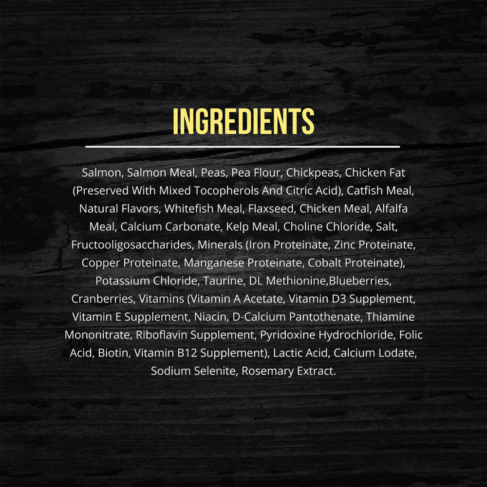 Shop / Cat Food / Fussie Cat Market Fresh Grain Free Salmon Recipe Dry Cat Food Fussie Cat Market Fresh Grain Free Salmon Recipe Dry Cat Food Fussie Cat Weight: 4 lb $18.99 4-lb Purchase Options Free In-Store Pick Up Not Available Save 10% on orders $49+ Set your store for inventory and store pickup details Zip Code Search Same-day Delivery* No minimum charge for delivery orders. *Order before 2pm and have it delivered today. Orders placed after 2pm will be delivered the next day. Must be inside delivery radius. Zip Code Unfortunately delivery is not available to this address. In order to ensure the best availability accuracy, changing your selected store will remove all items from your cart. You will need to re-add these items with your newly selected store if you choose to continue. Continue Cancel Ship it to Me Quantity Add To Cart Feeding guide disclaimer ✕ Feeding guides provide a starting point for the amount of food to give your pet each day. We recommend that you keep your pet in ideal body condition and not allow them to become overweight. The amount of food your pet needs can vary based on age, activity level or other food and treats given, so be sure to work with your veterinarian to determine an appropriate weight for your pet, and to make any necessary adjustments to their feeding. Information PHYSIOLOGICALLY TUNED™ MEAT FIRST, POTATO AND GRAIN FREE SUPER PREMIUM FOOD FOR CATS. Our Market Fresh recipes are created with the freshest and finest ingredients. Like Salmon, which provides a complete, high-quality protein that’s an excellent source of Vitamin B12 and both Omega-3 and Omega-6 Fatty Acids. Not only is it the first ingredient in Market Fresh recipe, it’s also one of the most palatable foods available for felines. Ingredients Salmon, salmon meal, peas, pea flour, chickpeas, chicken fat (preserved with mixed tocopherols and citric acid), catfish meal, natural flavors, whitefish meal, flax seeds, chicken meal, alfalfa meal, calcium carbonate, kelp meal, choline chloride, salt, fructooligosaccharide, minerals (iron proteinate, zinc proteinate, copper proteinate, manganese proteinate, cobalt proteinate), potassium chloride, taurine, DL methionine, blueberries, cranberries, vitamins (vitamin A acetate, vitamin D3 supplement, vitamin E supplement, niacin, d-calcium pantothenate, thiamine mononitrate, riboflavin supplement, pyridoxine hydrochloride, folic acid, biotin, vitamin B12 supplement), lactic acid, calcium iodate, sodium selenite, rosemary extract. Guaranteed Analysis Nutrient Guaranteed Units Crude Protein 35% min Crude Fat 15% min Crude Fiber 5% max Carbohydrates 0.29 Moisture 10% max Calcium 1% min Magnesium 0.08% max Ash 0.075 Phosphorus 0.8% min Omega-6 Fatty Acids 1.5% min Omega-3 Fatty Acids 0.3% min Customers also liked Customer Reviews