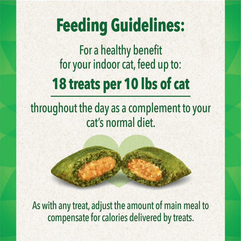 FELINE GREENIES SMARTBITES Hairball Control Treats for Cats are the perfect treat to keep your cat purring all day long. Designed by veterinarians and created with GREENIES FIBERBLEND Formula, these treats help minimize and control hairball formation and support healthy digestion in your adult cat when fed in conjunction with a hairball control diet. Featuring a mix of crunchy and creamy textures, these cat snacks have less than 2 calories, and added vitamins, minerals, and other nutrients for a nutritionally complete and balanced snack. Plus, these irresistible little treats come in a delectable chicken flavor and are made with natural ingredients, plus vitamins. These FELINE GREENIES are the healthy, tasty hairball control treats your cat will love.