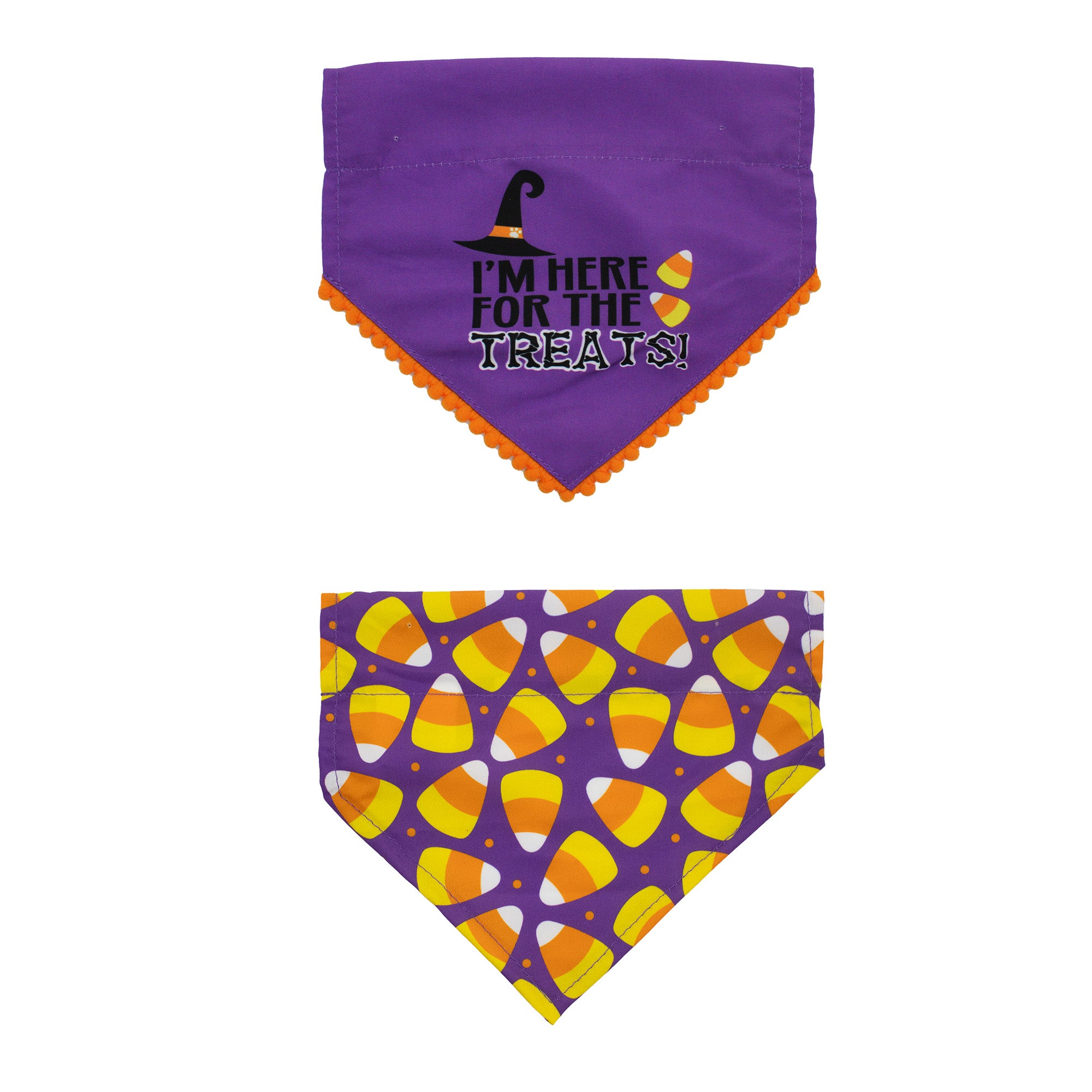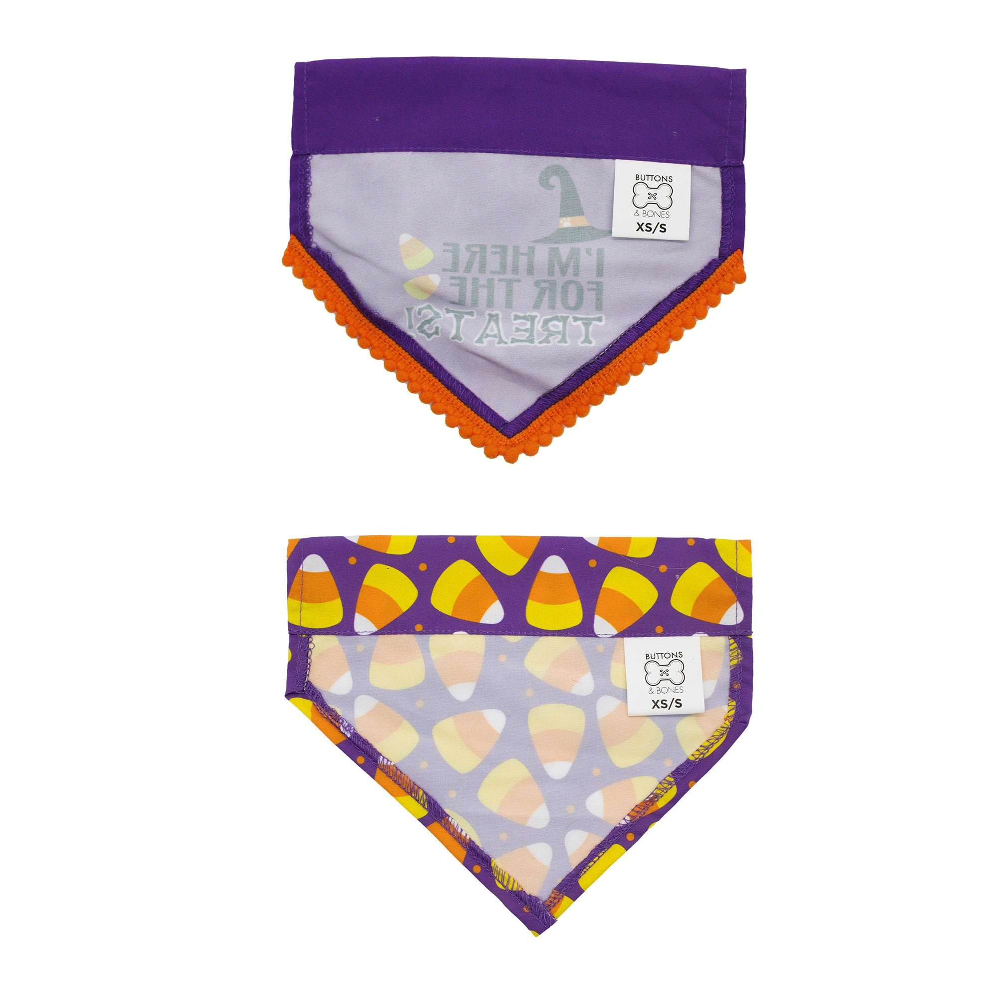 This Halloween, let your furry friend join in on the festive fun with the 2pk Treats Bandanas! Designed for pups who love a bit of eerie excitement, spooky style, and most importantly, treats! These soft and easy-to-use bandanas are covered in playful candy corn and delightful patterns, adding a touch of sweetness to every step. Perfect for trick-or-treating, Halloween parties, or just cozying up at home, these bandanas bring a bewitching style to every dog's wardrobe.