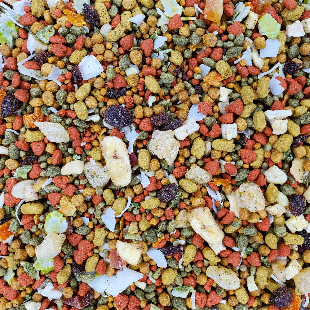 Shop / Food / Higgins inTune Harmony Conure & Cockatiel Food Higgins inTune Harmony Conure & Cockatiel Food Higgins Premium Pet Foods Weight: 2 lb $16.99 Sorry, this product is currently out of stock. Feeding guide disclaimer ✕ Feeding guides provide a starting point for the amount of food to give your pet each day. We recommend that you keep your pet in ideal body condition and not allow them to become overweight. The amount of food your pet needs can vary based on age, activity level or other food and treats given, so be sure to work with your veterinarian to determine an appropriate weight for your pet, and to make any necessary adjustments to their feeding. Information inTune Harmony brings together the extruded, complete nutrition of inTune tasty morsels with delicious fruits, veggies and other natural ingredients. inTune Harmony is a balanced, food and treat in one diet that doesn’t contain loose seeds, grains or peanuts. inTune Harmony is free of artificial preservatives, flavors and our colors are created by nature and not by chemicals. Our antioxidant formula contains balanced omega-3 & 6 fatty acids along with stabilized Vitamin C and Vitamin E to support the immune system. Protected probiotics are also added to promote digestive health and immunity by supporting the delivery of more active, beneficial bacteria to the intestinal tract. inTune Harmony for conures and cockatiels is made with inTune conure and cockatiel-sized, extruded morsels blended with proper portions of healthy treats, including papaya, pineapple, bananas, almonds, carrots and more. Your pet bird will enjoy the dietary variety of inTune Harmony’s food and treat in one blend while eating a healthy and seedless, balanced diet.Why We Love It: Free of Seeds and Peanuts Protected Probiotics and Balanced Omega-3 & 6 Fatty Acids Colors Sourced from Seeds, Spices & Vegetables About HigginsHiggins Premium Pet Foods is committed to providing companion birds and small animals with the highest quality foods and treats made without the use of artificial colors, preservatives and flavorings. We are strongly dedicated to building and maintaining relationships with pet parents built on trust, by making the complete health and well-being of their pets our primary goal. Ingredients Ground Corn, Brown Rice, Soybean Meal, Ground Wheat, Oat Meal, Papaya, Pineapple, Raisins, Sugar, Cashews, Coconut, Canola Oil (preserved with mixed tocopherols), Dicalcium Phosphate, Bananas, Apples, Almonds, Walnuts, Carrots, Flaked Peas, Dried Egg Product, Flaxseed, Celery, Sunflower Oil, Flaxseed Oil, Calcium Carbonate, Alfalfa Nutrient Concentrate, Salt, Cranberries, Blueberries, Beets, Parsley, Lettuce, Spinach, Watercress, Brewers Dried Yeast, DL-Methionine, L-Lysine, Choline Chloride, Mixed Tocopherols (preservative), Rosemary Extract, Potassium Chloride, Yeast Extract, Iron Oxide, L-Carnitine, Vitamin A Supplement, Vitamin D3 Supplement, Vitamin E Supplement, L-Ascorbyl-2-Polyphosphate (Source of Vitamin C), Zinc Sulfate, Ferrous Sulfate, Niacin, Folic Acid, Biotin, Manganese Sulfate, Copper Sulfate, Calcium Pantothenate, Thiamine Mononitrate, Pyridoxine Hydrochloride, Riboflavin Supplement, Zinc Proteinate, Manganese Proteinate, Copper Proteinate, Calcium Iodate, Sodium Selenite, Cobalt Carbonate, Vitamin B12 Supplement, Color Added (Annatto Extract, Turmeric, Beet Juice), Natural Banana Flavor, Natural Pineapple Flavor, Natural Citrus Flavor, Dried Enterococcus Faecium Fermentation Product, Dried Lactobacillus Acidophilus Fermentation Product, Dried Lactobacillus Casei Fermentation Product. Customers also liked Customer Reviews