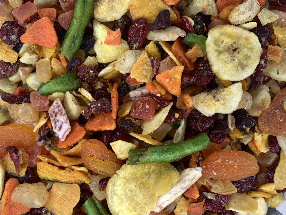 Shop / Dry Food / Higgins Versele-Laga Goldenfeast Veggie Fruit Crunch Bird Food for Parrots & Macaws Higgins Versele-Laga Goldenfeast Veggie Fruit Crunch Bird Food for Parrots & Macaws Higgins Pet Food Weight: 2 lb $31.99 Sorry, this product is currently out of stock. Feeding guide disclaimer ✕ Feeding guides provide a starting point for the amount of food to give your pet each day. We recommend that you keep your pet in ideal body condition and not allow them to become overweight. The amount of food your pet needs can vary based on age, activity level or other food and treats given, so be sure to work with your veterinarian to determine an appropriate weight for your pet, and to make any necessary adjustments to their feeding. Information Goldenfeast delivers a natural bounty of dried fruits and vegetables, exotic nuts, legumes, seeds, and grains from all over the world. Your bird will enjoy foraging through the best nature has to offer. Just like in nature, our treat mixes are free of artificial colors, preservatives and flavors and do not contain synthetic vitamins. Goldenfeast treat blends are designed to add variety and compliment your bird's regular diet. Veggie Fruit Crunch Treat Mix is a bountiful treat that blends exotic dried fruits and crispy veggie chips made from veggies like carrots, sweet potatoes, and green beans made to compliment your bird's food. Escape bird food boredom with Goldenfeast!Why We Love It No Peanuts or Sunflower Seeds No Artificial Colors, Flavors, or Preservatives Natural, No Synthetic Vitamins Added About HigginsGoldenfeast delivers a natural bounty of luscious, natural ingredients from all over the world. Companion birds will enjoy foraging through dried fruits and vegetables, assorted nuts, legumes, seeds, and ancient grains. Just like in nature, Goldenfeast diets are free of artificial colors, preservatives, and flavors and do not contain synthetic vitamins. Protected probiotics are added to help support immunity and gut health. Goldenfeast also offers treat blends that are designed to add variety and complement your bird's regular diet. Escape bird food boredom with Goldenfeast! Ingredients Cranberries, Carrots, Sweet Potatoes, Papaya, Green Beans, Pineapple, Cherries, Bananas, Squash, Apricots, Flaked Corn, Mango, Beets, Taro, Broccoli, Blueberries, Apples, Sweet Peppers. Customers also liked Customer Reviews