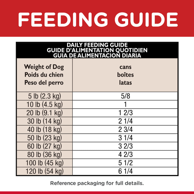 Shop / Unknown Type / Hill's Science Diet Adult Sensitive Stomach & Skin Chicken & Vegetable Recipe Canned Dog Food Hill's Science Diet Adult Sensitive Stomach & Skin Chicken & Vegetable Recipe Canned Dog Food Hill's Science Diet Weight: 12.8 oz, case of 12 $49.99 12.8-oz, case of 12 Purchase Options Free In-Store Pick Up Not Available Save 10% on orders $49+ Set your store for inventory and store pickup details Zip Code Search Same-day Delivery* No minimum charge for delivery orders. *Order before 2pm and have it delivered today. Orders placed after 2pm will be delivered the next day. Must be inside delivery radius. Zip Code Unfortunately delivery is not available to this address. In order to ensure the best availability accuracy, changing your selected store will remove all items from your cart. You will need to re-add these items with your newly selected store if you choose to continue. Continue Cancel Ship it to Me Quantity Add To Cart Feeding guide disclaimer ✕ Feeding guides provide a starting point for the amount of food to give your pet each day. We recommend that you keep your pet in ideal body condition and not allow them to become overweight. The amount of food your pet needs can vary based on age, activity level or other food and treats given, so be sure to work with your veterinarian to determine an appropriate weight for your pet, and to make any necessary adjustments to their feeding. Information Healthy digestion is a cornerstone of good dog nutrition. That's why Hill's® Science Diet® Adult Sensitive Stomach & Skin Chicken & Vegetable Entrée helps optimize digestive health & skin health for your adult dog. Natural fibers help promote easy stool cleanup while omega-6s and vitamin E nourish your adult dog's skin and adds luster to their coat. This is a wet food made with natural ingredients you'll want to check out. There’s more to love with the new look of Science Diet®. Some of our products also have new names, new kibble shapes & new formulas. ▸ Wet dog food formulated for optimal digestive & skin health ▸ Easily digestible, grain-free cat food with natural fibers for improved stool pickup ▸ Supports healthy skin and coat with omega-6 fatty acids and vitamin E ▸ Delightful wet food made with natural ingredients ▸ Supports digestive health, nourishes skin and promotes a lustrous coat Ingredients Chicken Broth, Chicken, Turkey Giblets, Green Beans, Carrots, Green Peas, Potato Starch, Egg Whites, Oat Fiber, Powdered Cellulose, Dried Tomato Pomace, Dried Beet Pulp, Pea Protein, Flaxseed, Coconut Oil, Chicken Liver Flavor, Dicalcium Phosphate, Carrageenan, Choline Chloride, Iodized Salt, DL-Methionine, Dried Apple Pomace, vitamins (Vitamin E Supplement, Ascorbic Acid (source of Vitamin C), L-Ascorbyl-2-Polyphosphate (source of Vitamin C), Thiamine Mononitrate, Niacin Supplement, Vitamin A Supplement, Calcium Pantothenate, Pyridoxine Hydrochloride, Vitamin B12 Supplement, Riboflavin Supplement, Biotin, Vitamin D3 Supplement, Menadione Sodium Bisulfite Complex (source of Vitamin K), Folic Acid), Potassium Chloride, L-Lysine, Calcium Carbonate, Taurine, minerals (Ferrous Sulfate, Zinc Oxide, Copper Sulfate, Manganese Sulfate, Calcium Iodate), L-Carnitine, Beta-Carotene. Guaranteed Analysis Nutrient Guaranteed Units Crude Protein 27.9 % Crude Fat 19.6 % Carbohydrates 42.6 % Crude Fiber 3.2 % Calcium 1.26 % Phosphorus 0.75 % Potassium 0.89 % Sodium 0.39 % Magnesium 0.119 % Vitamin C 121 ppm Vitamin E 703 IU/kg Omega-3 Fatty Acids 1.21 % Omega-6 Fatty Acids 5.43 % Customers also liked Customer Reviews