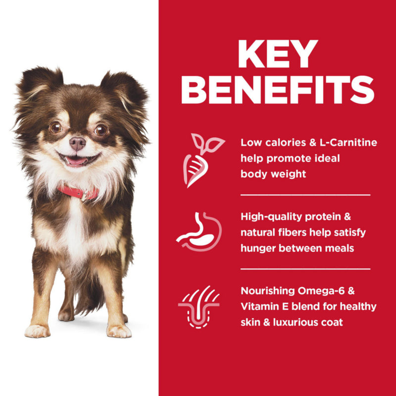 Shop / Dog Food / Hill's Science Diet Adult Sensitive Stomach & Skin Small & Toy Breed Dry Dog Food Hill's Science Diet Adult Sensitive Stomach & Skin Small & Toy Breed Dry Dog Food Hill's Science Diet Weight: 15 lb $57.99 15-lb Purchase Options Free In-Store Pick Up Not Available Save 10% on orders $49+ Set your store for inventory and store pickup details Zip Code Search Same-day Delivery* No minimum charge for delivery orders. *Order before 2pm and have it delivered today. Orders placed after 2pm will be delivered the next day. Must be inside delivery radius. Zip Code Unfortunately delivery is not available to this address. In order to ensure the best availability accuracy, changing your selected store will remove all items from your cart. You will need to re-add these items with your newly selected store if you choose to continue. Continue Cancel Ship it to Me Quantity Add To Cart Feeding guide disclaimer ✕ Feeding guides provide a starting point for the amount of food to give your pet each day. We recommend that you keep your pet in ideal body condition and not allow them to become overweight. The amount of food your pet needs can vary based on age, activity level or other food and treats given, so be sure to work with your veterinarian to determine an appropriate weight for your pet, and to make any necessary adjustments to their feeding. Information Your grown dog wants to feel as good as he or she looks. Hill's Science Diet Sensitive Stomach & Skin Small & Mini dry dog food is specially formulated for optimal digestive health. This dog food for sensitive stomachs uses prebiotic fiber to fuel gut bacteria and support a balanced microbiome. In addition, this dry dog food made with natural ingredients also provides an excellent source of vitamin E and Omega-6 fatty acids to nourish your dog's skin, and help maintain a healthy, shiny coat. This digestion care food is formulated with decades of cutting-edge research to be a great-tasting meal adult dogs can truly enjoy. There’s more to love with the new look of Science Diet. Some of our products also have new names, new kibble shapes & new formulas.Why We Love It Highly digestible food that is gentle on the stomach Vitamin E & Omega-6 fatty acids for skin & coat nourishment Precise balance and highly digestible ingredients for sensitive stomachs and for small breed dogs with sensitive skin For more than 75 years, Hill's Pet Nutrition has helped enrich and lengthen the special relationship between people and their pets by putting their passion for the health and happiness of animals into everything they do. They even partner with shelters to provide Hill's food to more than 12 million shelter pets over the past 20 years. Ingredients Chicken, Brewers Rice, Chicken Meal, Yellow Peas, Cracked Pearled Barley, Whole Grain Sorghum, Egg Product, Chicken Fat, Soybean Oil, Brown Rice, Dried Beet Pulp, Chicken Liver Flavor, Lactic Acid, Pork Liver Flavor, Potassium Chloride, Flaxseed, vitamins (Vitamin E Supplement, L-Ascorbyl-2-Polyphosphate (source of Vitamin C), Niacin Supplement, Thiamine Mononitrate, Vitamin A Supplement, Calcium Pantothenate, Riboflavin Supplement, Biotin, Vitamin B12 Supplement, Pyridoxine Hydrochloride, Folic Acid, Vitamin D3 Supplement), Iodized Salt, Choline Chloride, Taurine, minerals (Ferrous Sulfate, Zinc Oxide, Copper Sulfate, Manganous Oxide, Calcium Iodate, Sodium Selenite), Mixed Tocopherols for freshness, Natural Flavors, Beta-Carotene. "Nutrient GA Min GA Max As Fed Dry Matter Caloric Basis Protein 21 % 23.9 % 26 % 6.4 g / 100 kcal Fat 14.6 % 15.8 % 3.9 g / 100 kcal Carbohydrate / NFE 47.2 % 51.3 % 12.7 g / 100 kcal Crude Fiber 1.1 % 1.2 % 0.3 g / 100 kcal Calcium 0.89 % 0.97 % 239 mg / 100 kcal Phosphorus 0.73 % 0.79 % 195 mg / 100 kcal Potassium 0.77 % 0.84 % 207 mg / 100 kcal Sodium 0.26 % 0.28 % 70 mg / 100 kcal Magnesium 0.091 % 0.099 % 24 mg / 100 kcal Vitamin C 175 ppm 191 ppm 4.7 mg / 100 kcal Vitamin E 600 IU/kg 936 IU/kg 1018 IU/kg 25.12 IU / 100 kcal >20C Omega-3 FA 0.03 % 0.03 % 7 mg / 100 kcal >20C Omega-6 FA 0.18 % 0.2 % 49 mg / 100 kcal Carnitine 25.4 ppm 27.6 ppm 0.68 mg / 100 kcal Glucosamine 883 ppm 960 ppm 24 mg / 100 kcal Chondroitin Sulfate 1479 ppm 1608 ppm 40 mg / 100 kcal" Guaranteed Analysis Nutrient Guaranteed Units Crude Protein 26.0 % Crude Fat 15.9 % Crude Fiber 1.3 % Carbohydrates 51.4 % Calcium 0.97 % Phosphorus 0.79 % Potassium 0.74 % Sodium 0.29 % Magnesium 0.099 % Vitamin C 217 ppm Vitamin E 1038 IU/kg Omega-3 Fatty Acids 0.50 % Omega-6 Fatty Acids 4.57 % Customers also liked Customer Reviews