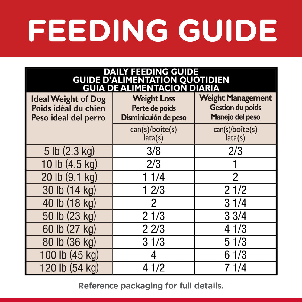 Shop / Wet Food / Hill's Science Diet Perfect Weight Chicken & Vegetable Entree Canned Dog Food Hill's Science Diet Perfect Weight Chicken & Vegetable Entree Canned Dog Food Hill's Science Diet Weight: 12.8 oz, Case of 12 $50.99 12.8-oz, Case of 12 Purchase Options Free In-Store Pick Up Not Available Save 10% on orders $49+ Set your store for inventory and store pickup details Zip Code Search Same-day Delivery* No minimum charge for delivery orders. *Order before 2pm and have it delivered today. Orders placed after 2pm will be delivered the next day. Must be inside delivery radius. Zip Code Unfortunately delivery is not available to this address. In order to ensure the best availability accuracy, changing your selected store will remove all items from your cart. You will need to re-add these items with your newly selected store if you choose to continue. Continue Cancel Ship it to Me Quantity Add To Cart Feeding guide disclaimer ✕ Feeding guides provide a starting point for the amount of food to give your pet each day. We recommend that you keep your pet in ideal body condition and not allow them to become overweight. The amount of food your pet needs can vary based on age, activity level or other food and treats given, so be sure to work with your veterinarian to determine an appropriate weight for your pet, and to make any necessary adjustments to their feeding. Information Give your grown dog the weight loss nutrition they need with the taste they can't resist. Hill's Science Diet Adult Perfect Weight Chicken & Vegetable Entree provides your adult dog with breakthrough weight management nutrition using real chicken and vegetables. This wet dog food made with natural ingredients provides clinically proven technology for healthy weight maintenance & long-lasting weight support. In fact, dogs have shown visible results within 10 weeks. There’s more to love with the new look of Science Diet®. Some of our products also have new names, new kibble shapes & new formulas. • A breakthrough weight management food for adult dogs • Dogs lost weight with visible results within 10 weeks • Provides healthy weight maintenance & long lasting weight support • Smooth tasting, made with natural ingredients • Change up meal time with Hill's Science Diet Adult Perfect Weight Hearty Vegetable & Chicken Stew. • #1 Veterinarian Recommended Over 70% of dogs lost weight within 10 weeks when fed this nutrition Ingredients Chicken Broth, Chicken, Pork Liver, Zucchini, Carrots, Green Peas, Rice, Rice Starch, Chicken Liver Flavor, Sunflower Oil, Powdered Cellulose, Potassium Alginate, Flaxseed, Calcium Chloride, Guar Gum, Dicalcium Phosphate, Calcium Lactate, Calcium Gluconate, vitamins (Vitamin E Supplement, L-Ascorbyl-2-Polyphosphate (source of Vitamin C), Thiamine Mononitrate, Niacin Supplement, Calcium Pantothenate, Vitamin B12 Supplement, Pyridoxine Hydrochloride, Biotin, Riboflavin Supplement, Folic Acid, Vitamin D3 Supplement), Monosodium Phosphate, Choline Chloride, Magnesium Oxide, Taurine, Sodium Tripolyphosphate, minerals (Zinc Oxide, Ferrous Sulfate, Manganese Sulfate, Copper Sulfate, Calcium Iodate), Cranberries, Apples, Broccoli. Guaranteed Analysis Nutrient Guaranteed Units Crude Protein 27.9 % Crude Fat 12.4 % Crude Fiber 11.7 % Carbohydrates 41.2 % Calcium 0.88 % Phosphorus 0.63 % Potassium 0.82 % Sodium 0.38 % Magnesium 0.127 % Vitamin C 316 ppm Vitamin E 700 IU/kg Omega-3 Fatty Acids 0.76 % Omega-6 Fatty Acids 2.39 % Customers also liked Customer Reviews