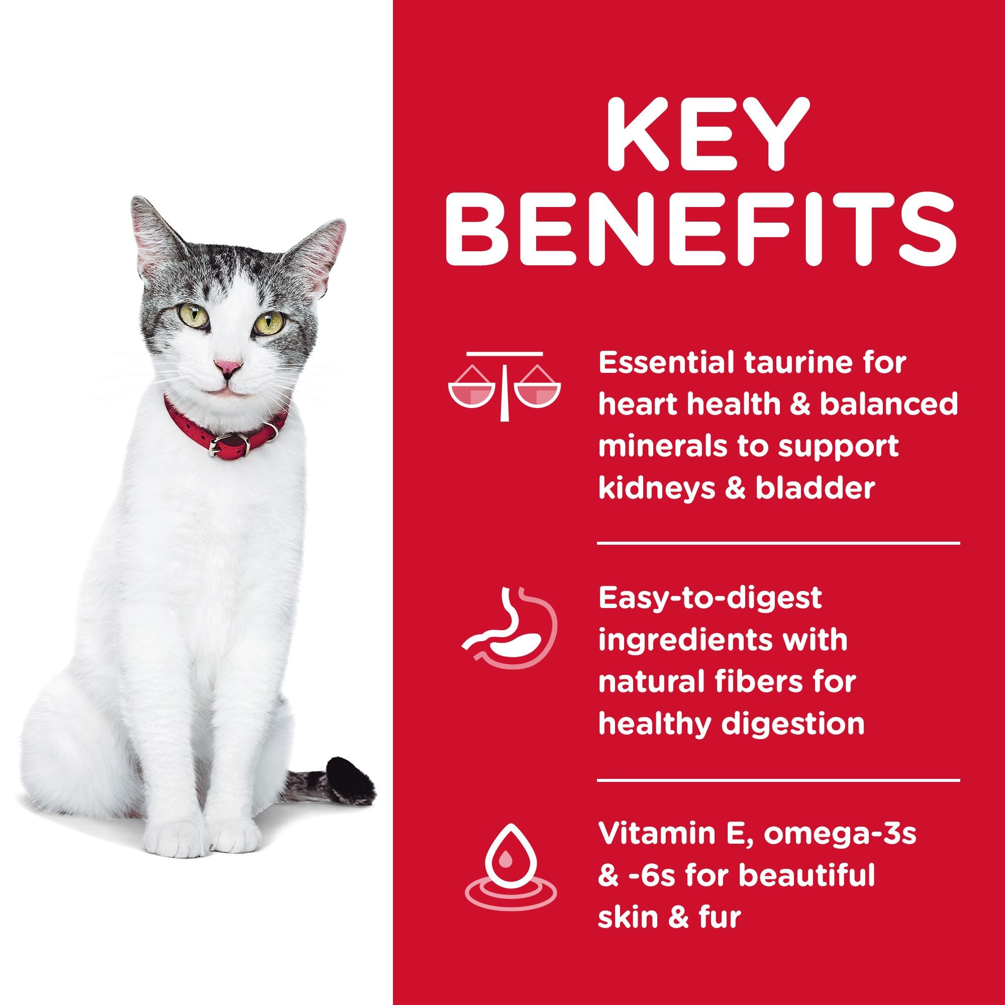 Shop / Cat Food / Hill's Science Diet Senior 11+ Dry Cat Food, Chicken Recipe Hill's Science Diet Senior 11+ Dry Cat Food, Chicken Recipe Hill's Science Diet 7lb $34.99 7lb Purchase Options Free In-Store Pick Up Not Available Save 10% on orders $49+ Set your store for inventory and store pickup details Zip Code Search Same-day Delivery* No minimum charge for delivery orders. *Order before 2pm and have it delivered today. Orders placed after 2pm will be delivered the next day. Must be inside delivery radius. Zip Code Unfortunately delivery is not available to this address. In order to ensure the best availability accuracy, changing your selected store will remove all items from your cart. You will need to re-add these items with your newly selected store if you choose to continue. Continue Cancel Ship it to Me Quantity Add To Cart Feeding guide disclaimer ✕ Feeding guides provide a starting point for the amount of food to give your pet each day. We recommend that you keep your pet in ideal body condition and not allow them to become overweight. The amount of food your pet needs can vary based on age, activity level or other food and treats given, so be sure to work with your veterinarian to determine an appropriate weight for your pet, and to make any necessary adjustments to their feeding. Information Hill's™ Science Diet™ Adult 11+ dry cat food supports healthy aging during the golden years. Contains a special ingredient blend to help keep older cats agile, more alert & interactive. Essential taurine for heart health & balanced minerals to support kidneys & bladder Vitamin E, Omega-3s & -6s for beautiful skin & fur Easy-to-digest ingredients with natural fibers for healthy digestion Ingredients Chicken, Whole Grain Wheat, Corn Gluten Meal, Chicken Fat, Brewers Rice, Egg Product, Flaxseed, Dried Beet Pulp, Chicken Liver Flavor, Wheat Gluten, Lactic Acid, Fish Oil, Calcium Sulfate, Potassium Chloride, Choline Chloride, Soybean Oil, vitamins (Vitamin E Supplement, L-Ascorbyl-2-Polyphosphate (source of Vitamin C), Niacin Supplement, Thiamine Mononitrate, Vitamin A Supplement, Calcium Pantothenate, Riboflavin Supplement, Biotin, Vitamin B12 Supplement, Pyridoxine Hydrochloride, Folic Acid, Vitamin D3 Supplement), Calcium Carbonate, Taurine, Dicalcium Phosphate, L-Carnitine, minerals (Ferrous Sulfate, Zinc Oxide, Copper Sulfate, Manganous Oxide, Calcium Iodate, Sodium Selenite), Iodized Salt, Oat Fiber, Mixed Tocopherols for freshness, Natural Flavors, Beta-Carotene, Apples, Broccoli, Carrots, Cranberries, Green Peas. Guaranteed Analysis Nutrient GA Min GA Max As Fed Dry Matter Caloric Basis Protein 28 % 30.7 % 32.7 % 7.5 g / 100 kcal Fat 18 % 21.1 % 22.5 % 5.2 g / 100 kcal Carbohydrate / NFE 34.8 % 37 % 8.5 g / 100 kcal Crude Fiber 3.5 % 1.6 % 1.7 % 0.4 g / 100 kcal Calcium 0.81 % 0.86 % 197 mg / 100 kcal Phosphorus 0.65 % 0.69 % 158 mg / 100 kcal Potassium 0.78 % 0.83 % 190 mg / 100 kcal Sodium 0.31 % 0.33 % 75 mg / 100 kcal Magnesium 0.081 % 0.086 % 20 mg / 100 kcal Vitamin C 100 mg/kg 135 ppm 144 ppm 3.31 mg / 100 kcal Vitamin E 650 IU/kg 1072 IU/kg 1141 IU/kg 26.22 IU / 100 kcal Total Omega-3 FA 0.8 % 1.2 % 1.28 % 294 mg / 100 kcal Total Omega-6 FA 2.5 % 4.06 % 4.32 % 993 mg / 100 kcal Carnitine 532.6 ppm 566.6 ppm 13.03 mg / 100 kcal Customers also liked Customer Reviews