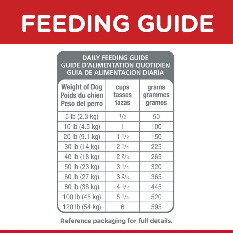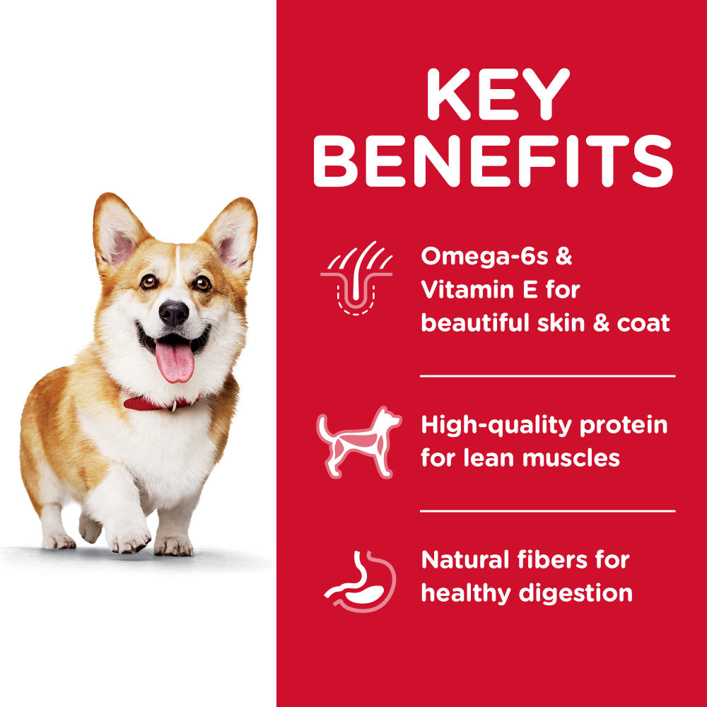 Shop / Dog Food / Hill's Science Diet Small Bites Lamb Meal & Brown Rice Recipe Dry Dog Food Hill's Science Diet Small Bites Lamb Meal & Brown Rice Recipe Dry Dog Food Hill's Science Diet Weight: 33 lb $83.99 33-lb Purchase Options Free In-Store Pick Up Not Available Save 10% on orders $49+ Set your store for inventory and store pickup details Zip Code Search Same-day Delivery* No minimum charge for delivery orders. *Order before 2pm and have it delivered today. Orders placed after 2pm will be delivered the next day. Must be inside delivery radius. Zip Code Unfortunately delivery is not available to this address. In order to ensure the best availability accuracy, changing your selected store will remove all items from your cart. You will need to re-add these items with your newly selected store if you choose to continue. Continue Cancel Ship it to Me Quantity Add To Cart Feeding guide disclaimer ✕ Feeding guides provide a starting point for the amount of food to give your pet each day. We recommend that you keep your pet in ideal body condition and not allow them to become overweight. The amount of food your pet needs can vary based on age, activity level or other food and treats given, so be sure to work with your veterinarian to determine an appropriate weight for your pet, and to make any necessary adjustments to their feeding. Information Little dogs have their own needs when it comes to meal time, so give your small breed dog a pet food that big on love, and small in size. Hill's® Science Diet® Small Paws™ adult dry dog food is tailored nutrition for the unique needs of small & mini dogs during the prime of their life. Delicious lamb flavor for those that prefer variety & specially made with nibble size kibble. This dog food made with natural ingredients contains omega-6s and vitamin E to nourish your dog's coat and skin. Balanced levels of high-quality protein help your small or little-breed dog maintain lean muscle, while the proprietary antioxidant blend supports the immune system for lifelong health. There’s more to love with the new look of Science Diet®. Some of our products also have new names, new kibble shapes & new formulas.Why We Love It Supports healthy digestion with small kibble and easily digestible ingredients A nourishing blend of omega-6 fatty acids and vitamin E for healthy skin and coat Provides high-quality protein to maintain lean muscle in small dogs For more than 75 years, Hill's Pet Nutrition has helped enrich and lengthen the special relationship between people and their pets by putting their passion for the health and happiness of animals into everything they do. They even partner with shelters to provide Hill's food to more than 12 million shelter pets over the past 20 years. Ingredients Lamb Meal, Brown Rice, Brewers Rice, Whole Grain Corn, Wheat Gluten, Whole Grain Wheat, Chicken Fat, Whole Grain Sorghum, Cracked Pearled Barley, Pea Protein, Chicken Liver Flavor, Dried Beet Pulp, Soybean Oil, Lactic Acid, Potassium Chloride, Pork Liver Flavor, Flaxseed, Calcium Carbonate, L-Lysine, Iodized Salt, DL-Methionine, Choline Chloride, vitamins (Vitamin E Supplement, L-Ascorbyl-2-Polyphosphate (source of Vitamin C), Niacin Supplement, Thiamine Mononitrate, Vitamin A Supplement, Calcium Pantothenate, Riboflavin Supplement, Biotin, Vitamin B12 Supplement, Pyridoxine Hydrochloride, Folic Acid, Vitamin D3 Supplement), Pumpkin, Taurine, minerals (Ferrous Sulfate, Zinc Oxide, Copper Sulfate, Manganous Oxide, Calcium Iodate, Sodium Selenite), Mixed Tocopherols for freshness, Natural Flavors, L-Tryptophan, L-Threonine, Beta-Carotene. "Nutrient GA Min GA Max As Fed Dry Matter Caloric Basis Protein 20 % 23 % 25 % 6.3 g / 100 kcal Fat 14.3 % 15.5 % 3.9 g / 100 kcal Carbohydrate / NFE 46.7 % 50.8 % 12.8 g / 100 kcal Crude Fiber 4 % 1.5 % 1.7 % 0.4 g / 100 kcal Calcium 1.18 % 1.28 % 322 mg / 100 kcal Phosphorus 0.72 % 0.78 % 196 mg / 100 kcal Potassium 0.87 % 0.95 % 239 mg / 100 kcal Sodium 0.35 % 0.38 % 96 mg / 100 kcal Magnesium 0.099 % 0.107 % 27 mg / 100 kcal Vitamin C 188 ppm 204 ppm 5.15 mg / 100 kcal Vitamin E 757 IU/kg 823 IU/kg 20.72 IU / 100 kcal >20C Omega-3 FA 0.02 % 0.02 % 5 mg / 100 kcal >20C Omega-6 FA 0.06 % 0.07 % 17 mg / 100 kcal" Guaranteed Analysis Nutrient Guaranteed Units Crude Protein 23.8 % Crude Fat 16.7 % Crude Fiber 1.7 % Carbohydrates 51.4 % Calcium 1.09 % Phosphorus 0.8 % Potassium 0.85 % Sodium 0.39 % Magnesium 0.102 % Vitamin C 144 ppm Vitamin E 859 IU/kg Omega-3 Fatty Acids 0.7 % Omega-6 Fatty Acids 3.73 % Customers also liked Customer Reviews