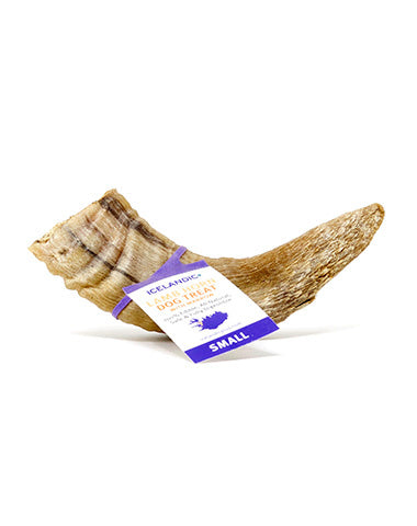 Shop / Unknown Type / Icelandic+ Small Lamb Horn with Marrow Dog Treat Icelandic+ Small Lamb Horn with Marrow Dog Treat Icelandic+ Single $6.99 Sorry, this product is currently out of stock. Feeding guide disclaimer ✕ Feeding guides provide a starting point for the amount of food to give your pet each day. We recommend that you keep your pet in ideal body condition and not allow them to become overweight. The amount of food your pet needs can vary based on age, activity level or other food and treats given, so be sure to work with your veterinarian to determine an appropriate weight for your pet, and to make any necessary adjustments to their feeding. Information Icelandic+™ Small Lamb Horns with Marrow come in a variety of natural colors and range from 4 - 4.7 inches in length. The Icelandic+™ Small Lamb Horn with Marrow is great for small breeds and puppies. The Horn acts as a natural teether for puppies that have that constant need to chew - give them a Horn instead of your shoe! You can also soak the horn in warm water to help soften it for puppies and older dogs with sensitive teeth. Package Contains 1 Small Lamb Horn with Marrow. Dental Care: The Icelandic+ Lamb Horn with Marrow is a natural chew that helps your dog’s gums to be “brushed” as it is made of thousands of small fibers. If your dog’s teeth are not regularly brushed, you may experience some gum bleeding with their first Horn. This is natural and is actually a benefit as the Horn’s fibers are “scrubbing" the gum line. With continued use and additional Horns, you will see a remarkable difference in the health of your dog’s gum line and whiter teeth. People who do not floss similarly experience gum bleeding when they first start and the bleeding stops when gum health improves from flossing, as will happen with your dog. Both you and your veterinarian will be pleased with the change in gum health and appearance of teeth over time. Why We Love It 100% Pure Icelandic+™ Large Lamb Horn Dog Treat, Made of Keratin, not a bone Long-Lasting & Nutrient-Rich,Reduce tartar & plaque build-up for healthier gums and teeth Peace of mind – cleaned, boiled, and baked within FDA, USDA, EU, and MAST standards and regulations 100% Edible – hours of chewing enjoyment for your pet 100% Natural – no additives, no preservatives, no supplements 100% Single Ingredient Dog Treat About Icelandic+At Icelandic+, we care about pets. Ours and yours. That’s why we’re committed to producing healthy dog treats that meet their specific digestive, physiological, metabolic, and nutritional requirements. We use only the purest ingredients from Iceland, manufactured within FDA, USDA, EU, and MAST standards and regulations, to ensure the freshness, purity, and integrity of our products. And there are zero additives, fillers, supplements, or preservatives in them. Why? Our treats don’t need them. Dogs love our treats. Their owners will love the enjoyment and nutritional benefits their pets experience from eating them. Ingredients Lamb Guaranteed Analysis Nutrient Guaranteed Units Crude Protein 80.7% min Crude Fat 0.18% min Ash 2.31% max Crude Fiber 0.24% max Carbohydrates 5.87% max Moisture 10.7% max Customers also liked Customer Reviews