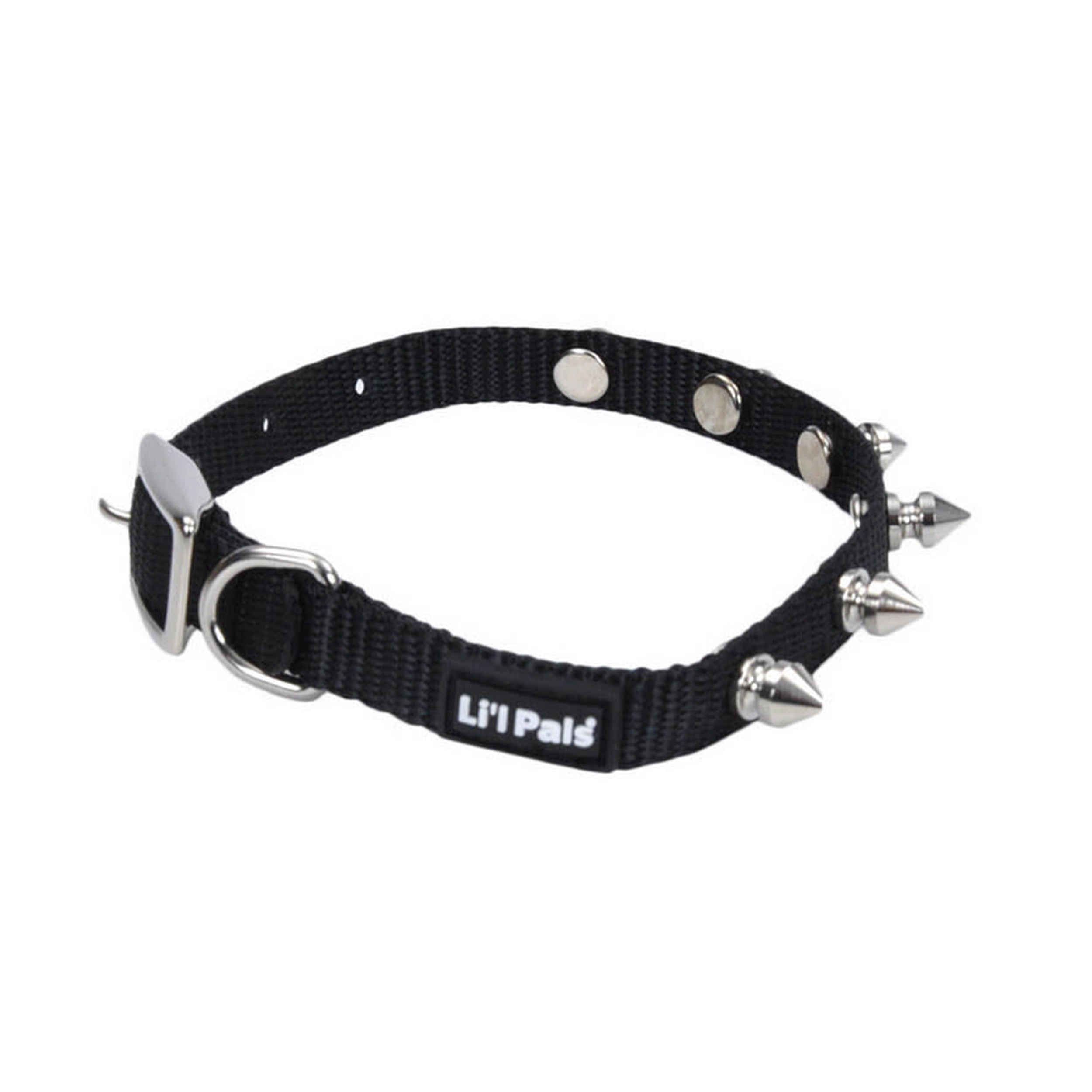 Shop / Unknown Type / Li'l Pals® Spiked Nylon Dog Collar, Black, Petite X-Small Li'l Pals® Spiked Nylon Dog Collar, Black, Petite X-Small Lil Pals Petite X Small 3/8" x 6" 8" $8.99 Petite X-Small - 3/8" x 6"-8" Purchase Options Free In-Store Pick Up Not Available Save 10% on orders $49+ Set your store for inventory and store pickup details Zip Code Search Same-day Delivery* No minimum charge for delivery orders. *Order before 2pm and have it delivered today. Orders placed after 2pm will be delivered the next day. Must be inside delivery radius. Zip Code Unfortunately delivery is not available to this address. In order to ensure the best availability accuracy, changing your selected store will remove all items from your cart. You will need to re-add these items with your newly selected store if you choose to continue. Continue Cancel Ship it to Me Quantity Add To Cart Information Get on the cutting edge of dog fashion with the Li'l Pals® Spiked Nylon Dog Collar! This collar is sized specifically for small dogs and puppies to provide a secure, comfortable fit. It features silver mini-spikes for a tough, edgy look. The spikes are rounded to prevent any harm or injury, keeping your petite canine safe and stylish. Its durable nylon material is specially processed to prevent fraying for long-lasting use. Bring out your little dog's inner rock star with this collar! Customers also liked Customer Reviews