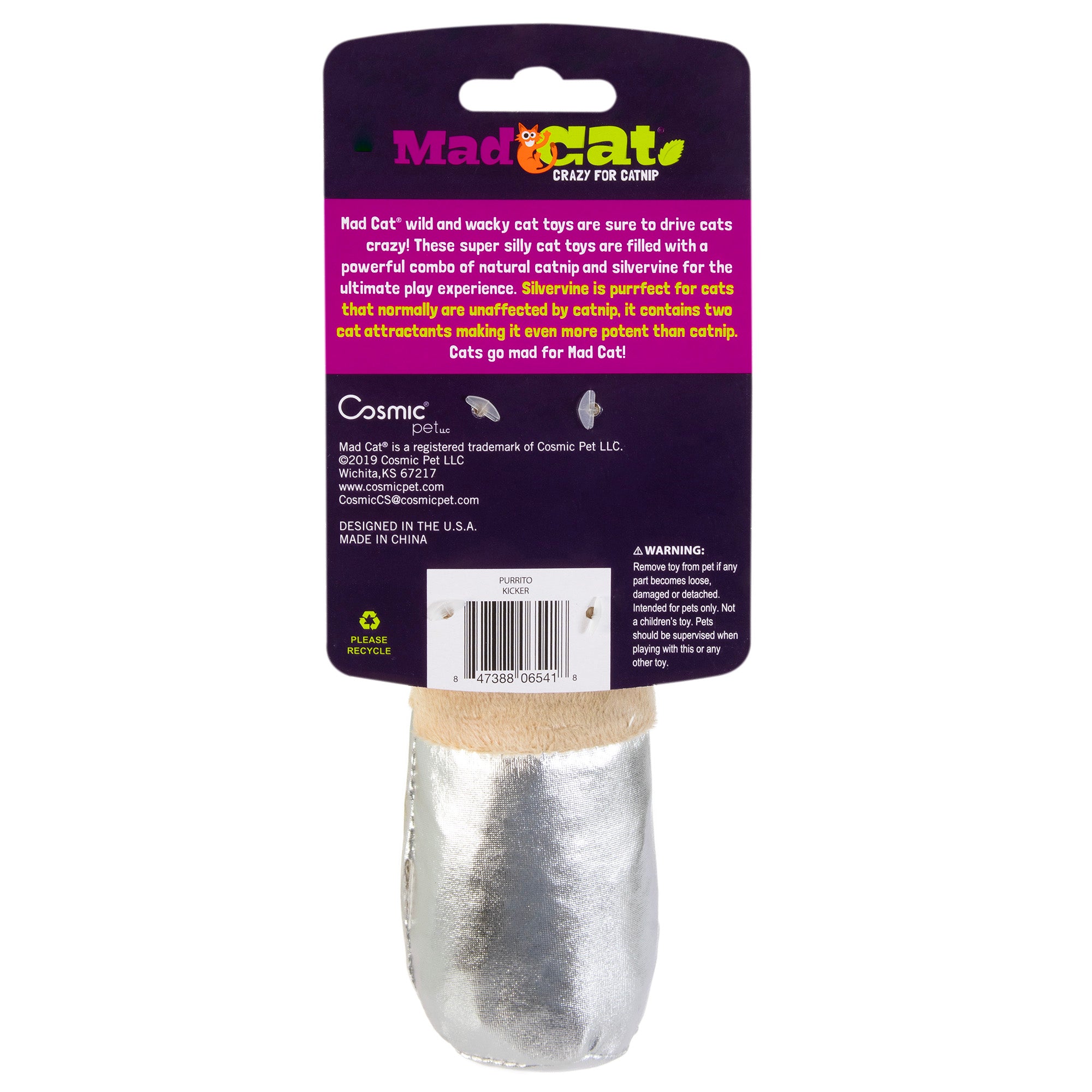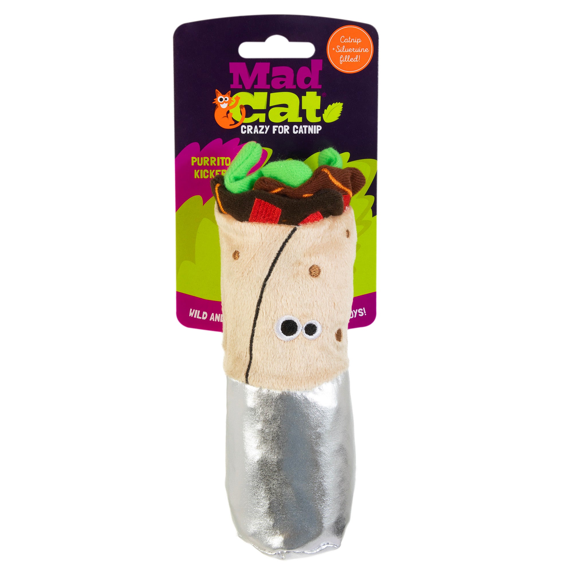 Shop / Unknown Type / MAD CAT BIG Purrito Kicker Cat Toy MAD CAT BIG Purrito Kicker Cat Toy MAD CAT Default Title $11.99 Default Title Purchase Options Free In-Store Pick Up Not Available Save 10% on orders $49+ Set your store for inventory and store pickup details Zip Code Search Same-day Delivery* No minimum charge for delivery orders. *Order before 2pm and have it delivered today. Orders placed after 2pm will be delivered the next day. Must be inside delivery radius. Zip Code Unfortunately delivery is not available to this address. In order to ensure the best availability accuracy, changing your selected store will remove all items from your cart. You will need to re-add these items with your newly selected store if you choose to continue. Continue Cancel Ship it to Me Quantity Add To Cart Information Give your furry friend a wild and wacky plaything with the Big Burrito Kicker Catnip & Silvervine Cat Toy from Mad Cat. This plush toy is filled with a unique blend of premium catnip and silvervine to entice your kitty to play. Both the catnip and silvervine are pure and pesticide-free for the safety of your paw-tner. This toy also features multiple textures to enhance playtime for your companion. Ideal for tossing, batting, kicking and cuddling, Mad Cat Big Burrito Kicker Catnip & Silvervine Cat Toy will keep your cat occupied for hours to come. Customers also liked Customer Reviews