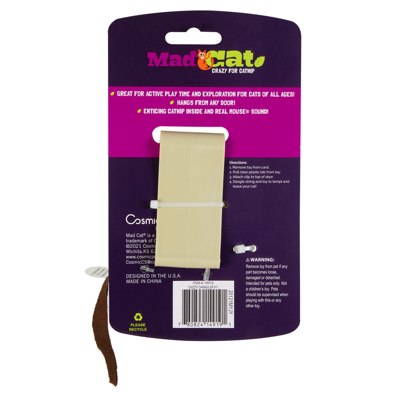 Shop / Unknown Type / MAD CAT Dizzy Dangler Cat Toy MAD CAT Dizzy Dangler Cat Toy MAD CAT Default Title $13.49 Default Title Purchase Options Free In-Store Pick Up Not Available Save 10% on orders $49+ Set your store for inventory and store pickup details Zip Code Search Same-day Delivery* No minimum charge for delivery orders. *Order before 2pm and have it delivered today. Orders placed after 2pm will be delivered the next day. Must be inside delivery radius. Zip Code Unfortunately delivery is not available to this address. In order to ensure the best availability accuracy, changing your selected store will remove all items from your cart. You will need to re-add these items with your newly selected store if you choose to continue. Continue Cancel Ship it to Me Quantity Add To Cart Information Batter up! You beloved kitty can hold batting practice right in your living room with the DOOR DANGLER by Mad Cat! The tethered mouse can be suspended from the top of any door you choose. PLUS, it offers the Purr-Fect target to practice her swatting skills. Best of all, the REAL MOUSE sound and catnip scent make this toy ideal for solo play! Encourages healthy exercise for physical fitness and overall happiness and well-being Customers also liked Customer Reviews