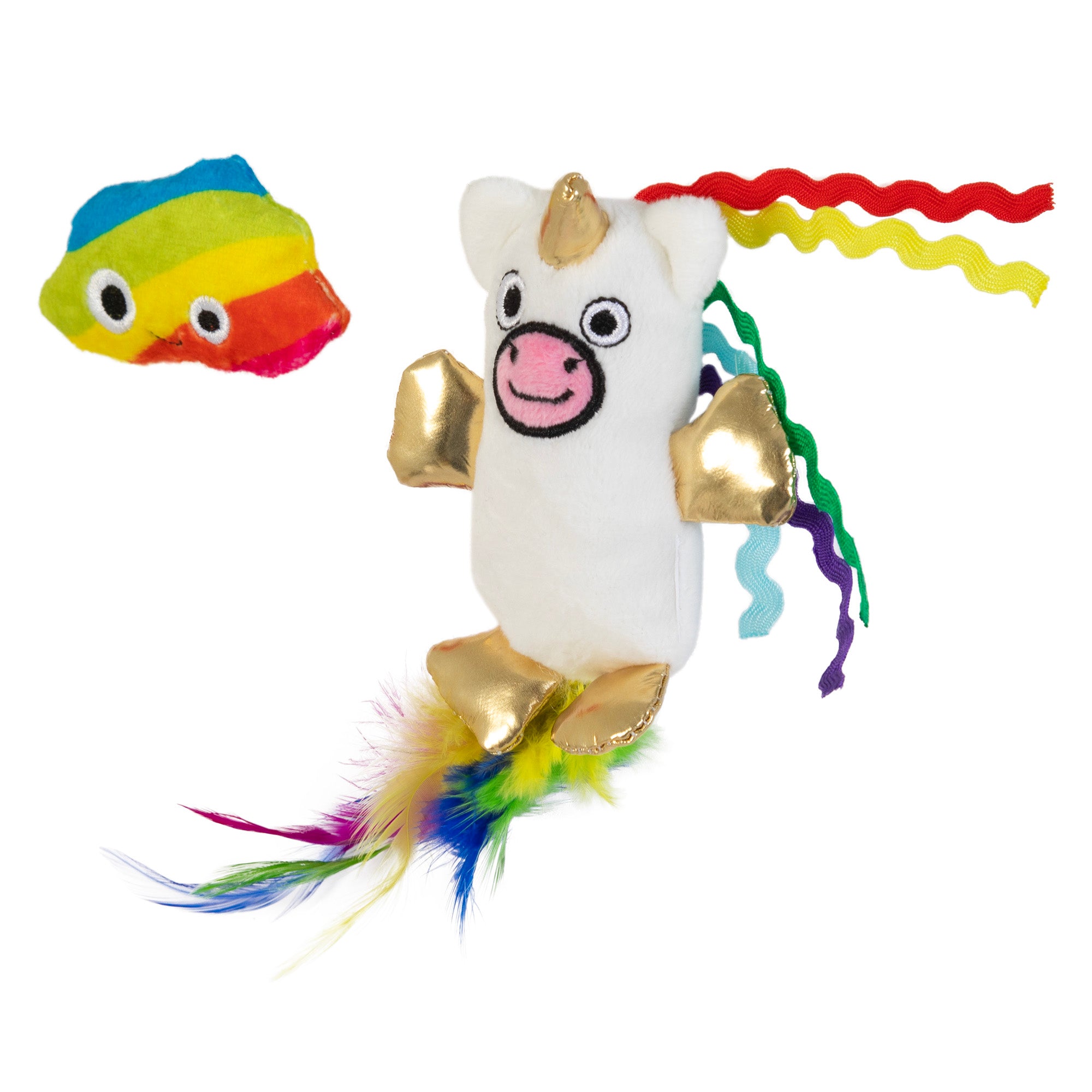 Shop / Unknown Type / MAD CAT Mewnicorn 2 Pack Cat Toy MAD CAT Mewnicorn 2 Pack Cat Toy MAD CAT Default Title $10.79 Default Title Purchase Options Free In-Store Pick Up Not Available Save 10% on orders $49+ Set your store for inventory and store pickup details Zip Code Search Same-day Delivery* No minimum charge for delivery orders. *Order before 2pm and have it delivered today. Orders placed after 2pm will be delivered the next day. Must be inside delivery radius. Zip Code Unfortunately delivery is not available to this address. In order to ensure the best availability accuracy, changing your selected store will remove all items from your cart. You will need to re-add these items with your newly selected store if you choose to continue. Continue Cancel Ship it to Me Quantity Add To Cart Information With the Mewnicorn & Rainbow Poop Catnip & Silverline cat toys from Mad Cat, you can introduce your favorite feline to a colorful duo that's sure to curl her whiskers. Filled with an exclusive blend of catnip and silvervine, these hilarious stuffies are potent, pure, playful and pesticide-free. Even kitties who aren't interested in catnip may be drawn to silvervine— a different plant that can create a similar buzz! Ideal for batting, kicking, cuddling and throwing, this duo is made of high-quality plush, irresistibly adorable embroidery, feathers and ribbons. Customers also liked Customer Reviews