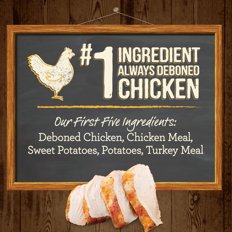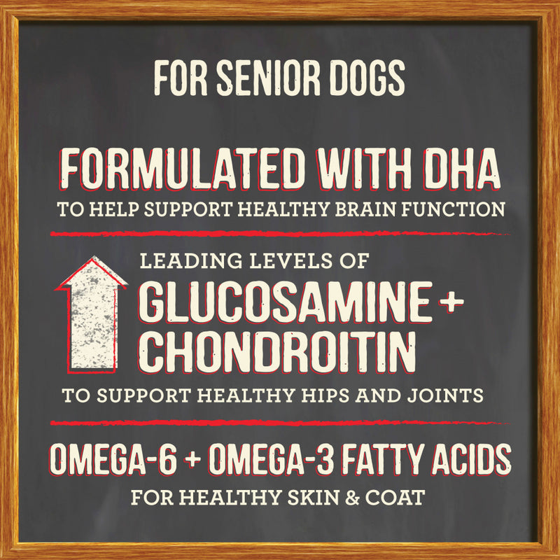 Shop / Dog Food / Merrick Grain Free Senior Real Chicken & Sweet Potato Recipe Dry Dog Food Merrick Grain Free Senior Real Chicken & Sweet Potato Recipe Dry Dog Food Merrick $49.99 10 lb 22 lb 4 lb 10-lb 22-lb 4-lb Purchase Options Free In-Store Pick Up Not Available Save 10% on orders $49+ Set your store for inventory and store pickup details Zip Code Search Same-day Delivery* No minimum charge for delivery orders. *Order before 2pm and have it delivered today. Orders placed after 2pm will be delivered the next day. Must be inside delivery radius. Zip Code Unfortunately delivery is not available to this address. In order to ensure the best availability accuracy, changing your selected store will remove all items from your cart. You will need to re-add these items with your newly selected store if you choose to continue. Continue Cancel Ship it to Me Quantity Add To Cart Feeding guide disclaimer ✕ Feeding guides provide a starting point for the amount of food to give your pet each day. We recommend that you keep your pet in ideal body condition and not allow them to become overweight. The amount of food your pet needs can vary based on age, activity level or other food and treats given, so be sure to work with your veterinarian to determine an appropriate weight for your pet, and to make any necessary adjustments to their feeding. Information The Merrick Grain Free dog food story is one of superior nutrition, delicious taste and using the highest quality ingredients. It’s about staying true to our roots and staying put in our original Hereford, Texas, USA kitchen—the one where Garth Merrick started our company and where we still hand craft our natural dog food recipes today. All Merrick Grain Free dry dog food recipes start with real deboned meat and real whole foods like sweet potatoes, blueberries, peas and more to provide natural dog food nutrition that’s complete and balanced—with leading levels of quality protein, plus Omega-6 and Omega-3 fatty acids to ensure great looking, healthy skin and coat. #1 INGREDIENT: DEBONED MEAT, FISH OR POULTRY: Merrick Grain Free dog food recipes contain leading levels of high quality proteins for healthy energy levels, building muscle mass and a great taste your dog will love. Ingredients Deboned Chicken, Chicken Meal, Peas, Sweet Potatoes, Potatoes, Salmon Meal, Chicken Fat, Pea Protein, Potato Protein, Natural Flavor, Salt, Organic Dehydrated Alfalfa Meal, Potassium Chloride, L-Carnitine, Choline Chloride, Apples, Blueberries, Salmon Oil, T Minerals (Iron Amino Acid Complex, Zinc Amino Acid Complex, Zinc Sulfate, Sodium Selenite, Manganese Amino Acid Complex, Copper Amino Acid Complex, Potassium Iodide, Cobalt Proteinate, Cobalt Carbonate), aurine, Yucca Schidigera, Mixed Tocopherols for Freshness, Vitamins (Vitamin E Supplement, Vitamin B12 Supplement, Vitamin A Supplement, d-Calcium Pantothenate, Thiamine Mononitrate, Niacin, Riboflavin Supplement, Biotin, Vitamin D3 Supplement, Folic Acid, Pyridoxine Hydrochloride), Citric Acid for Freshness, Dried Lactobacillus plantarum Fermentation Product, Dried Lactobacillus casei Fermentation Product, Dried Enterococcus faecium Fermentation Product, Dried Lactobacillus acidophilus Fermentation Product. Guaranteed Analysis Nutrient Guaranteed Units Crude Protein 32% min Crude Fat 12% min Crude Fiber 3.5% max Moisture 11% max Omega-6 Fatty Acids 3% min Omega-3 Fatty Acids 0.3% min Glucosamine 1200 mg/kg min Chondroitin 1200 mg/kg min L-Carnitine 200 mg/kg min Customers also liked Customer Reviews