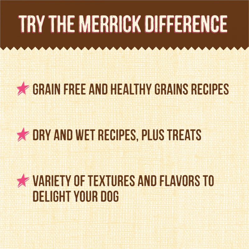Shop / Dog Food / Merrick Lil' Plates Small Breed Grain Free Real Salmon & Sweet Potato Dry Dog Food Merrick Lil' Plates Small Breed Grain Free Real Salmon & Sweet Potato Dry Dog Food Merrick $25.99 4 lb 12 lb 4-lb 12-lb Purchase Options Free In-Store Pick Up Not Available Save 10% on orders $49+ Set your store for inventory and store pickup details Zip Code Search Same-day Delivery* No minimum charge for delivery orders. *Order before 2pm and have it delivered today. Orders placed after 2pm will be delivered the next day. Must be inside delivery radius. Zip Code Unfortunately delivery is not available to this address. In order to ensure the best availability accuracy, changing your selected store will remove all items from your cart. You will need to re-add these items with your newly selected store if you choose to continue. Continue Cancel Ship it to Me Quantity Add To Cart Feeding guide disclaimer ✕ Feeding guides provide a starting point for the amount of food to give your pet each day. We recommend that you keep your pet in ideal body condition and not allow them to become overweight. The amount of food your pet needs can vary based on age, activity level or other food and treats given, so be sure to work with your veterinarian to determine an appropriate weight for your pet, and to make any necessary adjustments to their feeding. Information Merrick Lil' Plates Small Breed Grain-Free Real Salmon and Sweet Potato Dry Dog Food provides nutrition suited for your small breed pup with real salmon and ingredients sourced from local farmers. 55% of Merrick Lil' Plates Small Breed Grain-Free Real Salmon and Sweet Potato Dry Dog Food is composed of fish and healthy fat ingredients that help build and maintain lean, healthy muscle tissue with high quality protein starting with deboned salmon. The remaining 45% is made up of fresh produce including easy to digest carbohydrates like potatoes and sweet potatoes which provide sustained energy without upsetting grain-sensitive systems. It also includes omega fatty acids to promote healthy skin and coat as well as glucosamine to support joint health!Why We Love It Made with real, freshly sourced salmon and produce! Grain-free with omegas for a healthy skin and coat as well as glucosamine to support joint health About MerrickMerrick isn't your typical pet food company, and Merrick doesn't just make pet food. Merrick makes the best food ever for the best pet ever. Yours. The five star promise from Merrick is what's guaranteed to each and every dog and cat, along with their owners. Local growers, real whole foods, their own kitchen, balanced nutrition, and health you can see. Merrick creates real, wholesome recipes using USDA-inspected deboned meat and fresh produce for industry leading levels of protein, glucosamine and chondroitin. All of Merrick's foods are handcrafted in Hereford, Texas from USA farmers they know and trust. With no additives, sweeteners, colors or preservatives, real whole foods including high quality meats and fresh caught fish are the core of every Merrick dog and cat food. Merrick has been cooking their own foods in their own Texas kitchen for over 25 years. They stand behind their products with a 100% guarantee, promising that your dog or cat will be happier and healthier. You are what you eat, so why not feed your best friend the very best? Ingredients Deboned Salmon, Salmon Meal, Sweet Potatoes, Peas, Potatoes, Whitefish Meal, Potato Protein, Natural Flavor, Coconut Oil (preserved with mixed tocopherols), Deboned Whitefish, Apples, Flaxseed Oil, Blueberries, Inulin (from chicory root), Organic Alfalfa, Gelatin, Salmon Oil (source of Omega-3 fatty acids), Salt, Minerals (Zinc Sulfate, Iron Amino Acid Complex, Zinc Amino Acid Complex, Manganese Amino Acid Complex, Copper Amino Acid Complex, Potassium Iodide, Cobalt Amino Acid Complex, Sodium Selenite), Vitamins (Vitamin E Supplement, Vitamin A Acetate, Vitamin B12 Supplement, d-Calcium Pantothenate, Vitamin D3 Supplement, Niacin, Riboflavin Supplement, Biotin, Pyridoxine Hydrochloride, Folic Acid, Thiamine Mononitrate), Choline Chloride, Yucca Schidigera Extract, Dried Bacillus coagulans Fermentation Product, Dried Lactobacillus plantarum Fermentation Product, Dried Lactobacillus casei Fermentation Product, Dried Enterococcus faecium Fermentation Product, Dried Lactobacillus acidophilus Fermentation Product, Rosemary Extract. Guaranteed Analysis Nutrient Guaranteed Units Crude Protein 34.0% min Crude Fat 14.0% min Crude Fiber 4.5% max Moisture 11.0% max Omega-6 Fatty Acids 3.5% min Omega-3 Fatty Acids 0.4% min Glucosamine 800 mg/kg min Chondroitin Sulfate 800 mg/kg min Customers also liked Customer Reviews