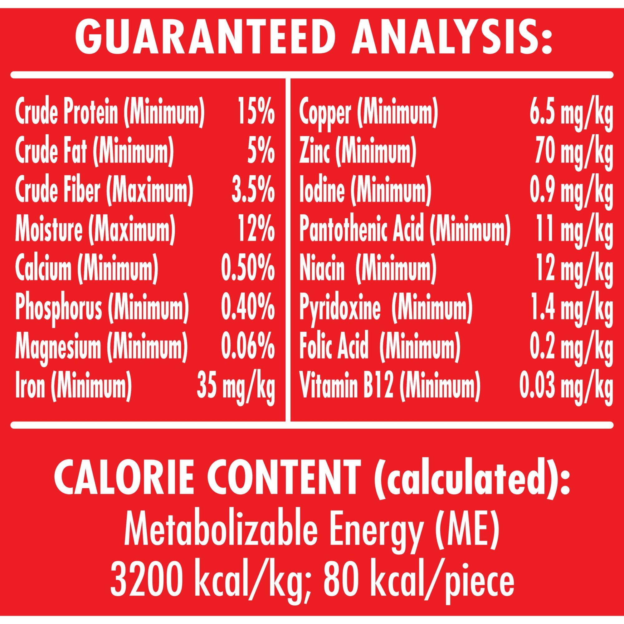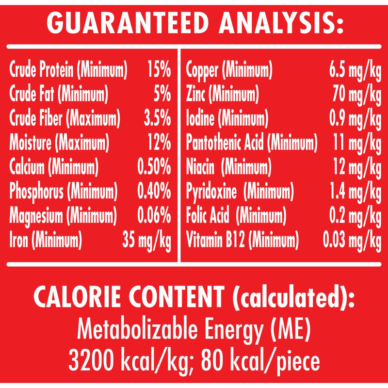 Wheat Flour, Ground Whole Wheat, Meat And Bone Meal (source Of Beef Flavor), Beef Fat (preserved With Bha/bht), Poultry By-product Meal, Turkey By-product Meal, Salt, Chicken Meal, Bacon Fat, Dicalcium Phosphate, Malt Extract, Malted Barley Flour, Vitamins (vitamin E Supplement, Niacin Supplement, Vitamin A Supplement, D-calcium Pantothenate, Riboflavin Supplement, Pyridoxine Hydrochloride, Vitamin D3 Supplement, Folic Acid, Biotin, Vitamin B12 Supplement), Minerals (ferrous Sulfate, Zinc Oxide, Manganous Oxide, Copper Sulfate, Calcium Iodate, Sodium Selenite), Brewers Dried Yeast, Added Color, Sodium Metabisulfite (used As A Preservative), Natural Bacon Flavor, Bha (used As A Preservative), Natural Sausage Flavor, Rosemary Extract
