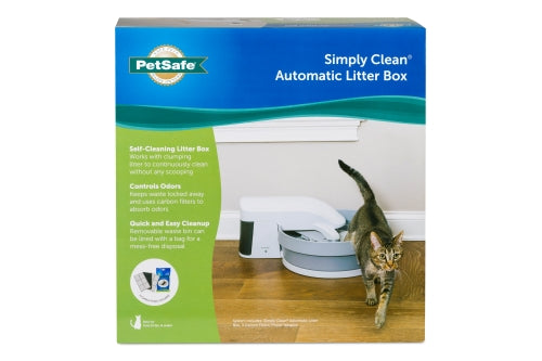 Shop / Unknown Type / PetSafe Simply Clean Self-Cleaning Cat Litter Box - Automatic Litter Box for Cats - Works with Clumping Cat Litter PetSafe Simply Clean Self-Cleaning Cat Litter Box - Automatic Litter Box for Cats - Works with Clumping Cat Litter PetSafe Default Title $130.99 Default Title Purchase Options Free In-Store Pick Up Not Available Save 10% on orders $49+ Set your store for inventory and store pickup details Zip Code Search Same-day Delivery* No minimum charge for delivery orders. *Order before 2pm and have it delivered today. Orders placed after 2pm will be delivered the next day. Must be inside delivery radius. Zip Code Unfortunately delivery is not available to this address. In order to ensure the best availability accuracy, changing your selected store will remove all items from your cart. You will need to re-add these items with your newly selected store if you choose to continue. Continue Cancel Ship it to Me Quantity Add To Cart Information The PetSafe® Simply Clean® Litter Box is an innovative, automatic litter box that stays fresh and clean without scooping. The quiet, slow-moving conveyor system sifts the litter and removes waste every 30 minutes, making one full rotation every hour and a half. Waste is carried off to the covered bin, keeping it out of sight while reducing odor. The replaceable carbon filter acts as a second layer of odor defense. The system is whisper quiet, and the LED light will ensure you that the system is running and giving your cat a carefree, clean litter box. All you need is premium clumping litter and recycled plastic shopping bags for a quick, hygienic cleanup. PetSafe® brand is here to help you and your pet live happy together™. Customers also liked Customer Reviews