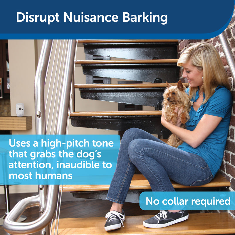 Shop / Unknown Type / PetSafe Single Room Indoor Dog Bark Control - Ultrasonic Device to Deter Barking Dogs - No Collar Needed - Up to 25 ft Range - Automatic Anti-Bark Pet System PetSafe Single Room Indoor Dog Bark Control - Ultrasonic Device to Deter Barking Dogs - No Collar Needed - Up to 25 ft Range - Automatic Anti-Bark Pet System PetSafe Default Title $35.99 Default Title Purchase Options Free In-Store Pick Up Not Available Save 10% on orders $49+ Set your store for inventory and store pickup details Zip Code Search Same-day Delivery* No minimum charge for delivery orders. *Order before 2pm and have it delivered today. Orders placed after 2pm will be delivered the next day. Must be inside delivery radius. Zip Code Unfortunately delivery is not available to this address. In order to ensure the best availability accuracy, changing your selected store will remove all items from your cart. You will need to re-add these items with your newly selected store if you choose to continue. Continue Cancel Ship it to Me Quantity Add To Cart Information When the PetSafe® Indoor Bark Control microphone picks up the sound of your dog's bark, the unit emits an ultrasonic tone that can be heard by your dog, but it is silent to most people. Startled by the high-pitched tone, the dog should stop barking, as it will associate its bark with the unpleasant noise. For dogs of any size, this bark control unit uses a high-frequency sound that works for dogs small to large within hearing range. PetSafe® brand is here to help you and your pet live happy together™. Customers also liked Customer Reviews