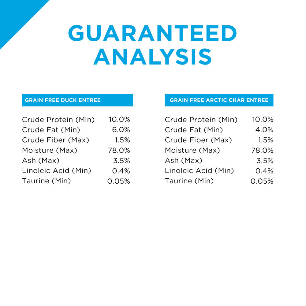 Shop / Unknown Type / Purina Pro Plan Focus Sensitive Skin & Stomach Poultry & Seafood Favorites Variety Pack Wet Cat Food Purina Pro Plan Focus Sensitive Skin & Stomach Poultry & Seafood Favorites Variety Pack Wet Cat Food Purina Pro Plan Weight: 3 oz, case of 24 $47.99 3-oz, case of 24 Purchase Options Free In-Store Pick Up Not Available Save 10% on orders $49+ Set your store for inventory and store pickup details Zip Code Search Same-day Delivery* No minimum charge for delivery orders. *Order before 2pm and have it delivered today. Orders placed after 2pm will be delivered the next day. Must be inside delivery radius. Zip Code Unfortunately delivery is not available to this address. In order to ensure the best availability accuracy, changing your selected store will remove all items from your cart. You will need to re-add these items with your newly selected store if you choose to continue. Continue Cancel Ship it to Me Quantity Add To Cart Feeding guide disclaimer ✕ Feeding guides provide a starting point for the amount of food to give your pet each day. We recommend that you keep your pet in ideal body condition and not allow them to become overweight. The amount of food your pet needs can vary based on age, activity level or other food and treats given, so be sure to work with your veterinarian to determine an appropriate weight for your pet, and to make any necessary adjustments to their feeding. Information Help support your cats digestive health with the science-based nutrition in the Purina Pro Plan FOCUS Sensitive Skin & Stomach Poultry & Seafood Favorites adult wet cat food variety pack. We craft these grain-free recipes with high-quality protein sources, including real duck or arctic char, to help support her lean muscle mass. Linoleic acid, an omega-6 fatty acid, helps promote her healthy skin and coat. These highly digestible sensitive stomach wet cat food formulas also include taurine, an essential amino acid for cats, plus essential vitamins and minerals to help support her overall health. The soft pate texture of this high-protein cat food is easy for small mouths to nibble. When you stock your cupboard with this 24-count variety pack, your favorite feline always has a choice between a delicious seafood meal or a delectable poultry offering. Enjoy the confidence that comes from knowing youre feeding your cherished companion a complete and balanced adult cat food that features real duck or fish as the #1 ingredient. We proudly craft this sensitive skin and stomach cat food in Purina-owned U.S. facilities. Ingredients Arctic Char Entree: Arctic Char, Ocean Whitefish, Liver, Meat By-Products, Water Sufficient For Processing, Inulin, Essential Nutrients And Other Ingredients: Minerals (Potassium Chloride, Tricalcium Phosphate, Salt, Zinc Sulfate, Ferrous Sulfate, Manganese Sulfate, Copper Sulfate, Potassium Iodide), Vitamins (Choline, Vitamin E, Vitamin B-1, Vitamin B-3, Vitamin B-5, Vitamin A, Vitamin K, Vitamin B-6, Vitamin B-2, Vitamin B-12, Vitamin B-7, Folic Acid, Vitamin D-3), Guar Gum, Taurine. A466117; Duck Entree: Duck, Liver, Meat By-Products, Water Sufficient For Processing, Ocean Whitefish, Inulin, Essential Nutrients And Other Ingredients: Minerals (Potassium Chloride, Tricalcium Phosphate, Salt, Zinc Sulfate, Ferrous Sulfate, Manganese Sulfate, Copper Sulfate, Potassium Iodide), Vitamins (Choline, Vitamin E, Vitamin B-1, Vitamin B-3, Vitamin B-5, Vitamin A, Vitamin K, Vitamin B-6, Vitamin B-2, Vitamin B-12, Vitamin B-7, Folic Acid, Vitamin D-3), Guar Gum, Taurine. A466217 Guaranteed Analysis Nutrient Guaranteed Units Crude Protein 10% min Crude Fat 6% min Crude Fiber 1.5% max Moisture 78% max Customers also liked Customer Reviews