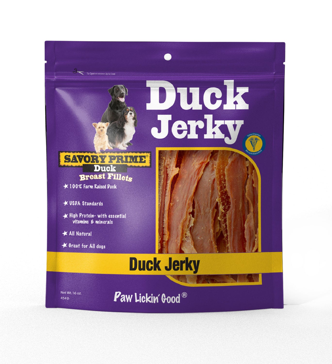 Shop / Unknown Type / Savory Prime Natural Duck Jerky Treat 16oz Savory Prime Natural Duck Jerky Treat 16oz Savory Prime 16oz $27.99 16oz Purchase Options Free In-Store Pick Up Not Available Save 10% on orders $49+ Set your store for inventory and store pickup details Zip Code Search Same-day Delivery* No minimum charge for delivery orders. *Order before 2pm and have it delivered today. Orders placed after 2pm will be delivered the next day. Must be inside delivery radius. Zip Code Unfortunately delivery is not available to this address. In order to ensure the best availability accuracy, changing your selected store will remove all items from your cart. You will need to re-add these items with your newly selected store if you choose to continue. Continue Cancel Ship it to Me Quantity Add To Cart Feeding guide disclaimer ✕ Feeding guides provide a starting point for the amount of food to give your pet each day. We recommend that you keep your pet in ideal body condition and not allow them to become overweight. The amount of food your pet needs can vary based on age, activity level or other food and treats given, so be sure to work with your veterinarian to determine an appropriate weight for your pet, and to make any necessary adjustments to their feeding. Information Savory Prime uses 100% high-protein duck breast that is hand sliced for the perfect Duck Jerky treat. Our Duck Sweet Potato Jerky is the same hand sliced duck breast, wrapped in sweet potato delivering a treat loaded with essential vitamins and minerals. A full-flavored taste dogs love. These favorites are an excellent treat or reward for all dogs. Ingredients Duck, Pea Protein, Glycerin, Salt Guaranteed Analysis Crude Protein min 50%, Crude Fat min 1%. Crude Fat max 3%, Crude Fiber max 1%, Moisture max 20% Customers also liked Customer Reviews