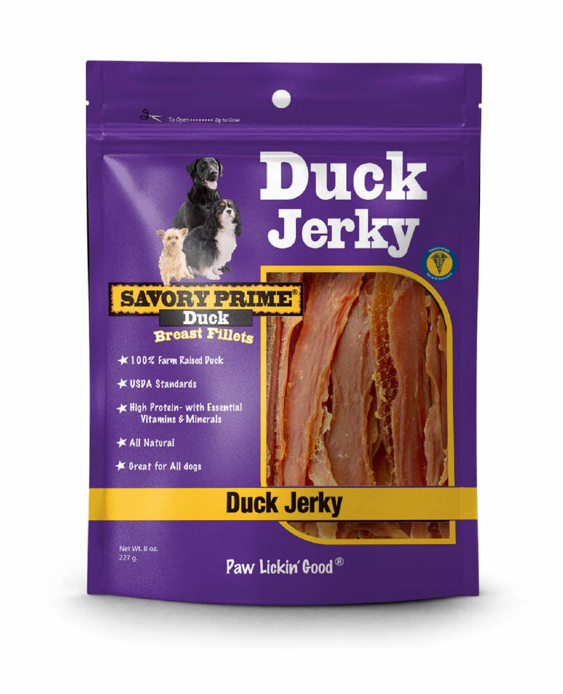 Shop / Unknown Type / Savory Prime Natural Duck Jerky Treat 8oz Savory Prime Natural Duck Jerky Treat 8oz Savory Prime 8oz $15.99 8oz Purchase Options Free In-Store Pick Up Not Available Save 10% on orders $49+ Set your store for inventory and store pickup details Zip Code Search Same-day Delivery* No minimum charge for delivery orders. *Order before 2pm and have it delivered today. Orders placed after 2pm will be delivered the next day. Must be inside delivery radius. Zip Code Unfortunately delivery is not available to this address. In order to ensure the best availability accuracy, changing your selected store will remove all items from your cart. You will need to re-add these items with your newly selected store if you choose to continue. Continue Cancel Ship it to Me Quantity Add To Cart Feeding guide disclaimer ✕ Feeding guides provide a starting point for the amount of food to give your pet each day. We recommend that you keep your pet in ideal body condition and not allow them to become overweight. The amount of food your pet needs can vary based on age, activity level or other food and treats given, so be sure to work with your veterinarian to determine an appropriate weight for your pet, and to make any necessary adjustments to their feeding. Information Savory Prime uses 100% high-protein duck breast that is hand sliced for the perfect Duck Jerky treat. Our Duck Sweet Potato Jerky is the same hand sliced duck breast, wrapped in sweet potato delivering a treat loaded with essential vitamins and minerals. A full-flavored taste dogs love. These favorites are an excellent treat or reward for all dogs. Ingredients Duck, Pea Protein, Glycerin, Salt Guaranteed Analysis Crude Protein min 50%, Crude Fat min 1%. Crude Fat max 3%, Crude Fiber max 1%, Moisture max 20% Customers also liked Customer Reviews