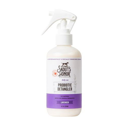 Shop / Unknown Type / Skouts Honor Probiotic Detangler Lavender Skouts Honor Probiotic Detangler Lavender Skout's Honor Default Title $14.99 Default Title Purchase Options Free In-Store Pick Up Not Available Save 10% on orders $49+ Set your store for inventory and store pickup details Zip Code Search Same-day Delivery* No minimum charge for delivery orders. *Order before 2pm and have it delivered today. Orders placed after 2pm will be delivered the next day. Must be inside delivery radius. Zip Code Unfortunately delivery is not available to this address. In order to ensure the best availability accuracy, changing your selected store will remove all items from your cart. You will need to re-add these items with your newly selected store if you choose to continue. Continue Cancel Ship it to Me Quantity Add To Cart Information Hydrates and softens for a more brushable, tangle-free coat. Our dog and cat hair detangler hydrates the skin and softens the coat for a more brushable, tangle-free pet. It contains avocado oil and live, topical probiotics that help support a healthy microbiome to defend against common skin problems such as itching, odor, dryness, dandruff, hot spots, and excessive shedding. Customers also liked Customer Reviews
