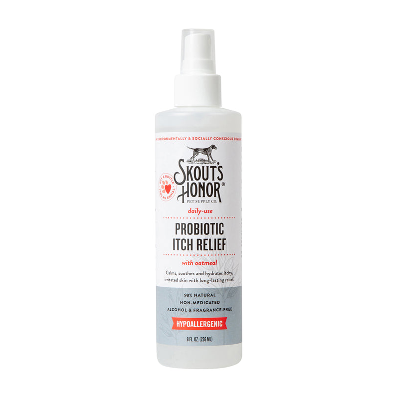 Shop / Unknown Type / Skout's Honor Probiotic Itch Relief For Dogs and Cats Skout's Honor Probiotic Itch Relief For Dogs and Cats Skout's Honor 8oz $14.99 8oz Purchase Options Free In-Store Pick Up Not Available Save 10% on orders $49+ Set your store for inventory and store pickup details Zip Code Search Same-day Delivery* No minimum charge for delivery orders. *Order before 2pm and have it delivered today. Orders placed after 2pm will be delivered the next day. Must be inside delivery radius. Zip Code Unfortunately delivery is not available to this address. In order to ensure the best availability accuracy, changing your selected store will remove all items from your cart. You will need to re-add these items with your newly selected store if you choose to continue. Continue Cancel Ship it to Me Quantity Add To Cart Information Skout’s Honor Probiotic Itch Relief offers comfort and long-lasting relief for pets who suffer from chronic skin irritations. May be used as needed or as a daily preventative spray for a happier and healthier-looking pet. Skout's Paw Pledge: Together we provide a day's worth of food to an animal in need with every purchase (Buy a Bottle, Feed an Animal). Ingredients: Water (Aqua), Aloe Barbadensis Leaf Juice, Avena Sativa (Oat) Meal Extract, Probiotic Blend (Isoeicosane, Hansenula, Kloeckera, Lactobacillus, Lactococcus, Leuconostoc Pediococcus, Saccharomyces, Fig/Lemon Ferment, Sorbitan Oleate, Cellulose Gum and Chitosan), Phenoxyethanol, Persea Gratissima (Avocado) Oil, Triethyl Citrate (Natural Antioxidant), Sodium Bicarbonate. Customers also liked Customer Reviews