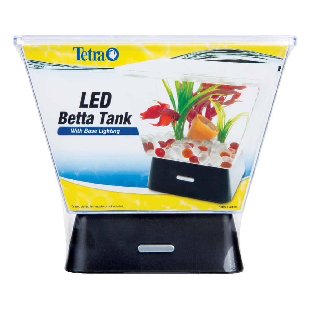 Shop / Unknown Type / Tetra Betta LED Tank 1 gallon Tetra Betta LED Tank 1 gallon Tetra 1 gallon $17.99 1 gallon Purchase Options Free In-Store Pick Up Not Available Save 10% on orders $49+ Set your store for inventory and store pickup details Zip Code Search Same-day Delivery* No minimum charge for delivery orders. *Order before 2pm and have it delivered today. Orders placed after 2pm will be delivered the next day. Must be inside delivery radius. Zip Code Unfortunately delivery is not available to this address. In order to ensure the best availability accuracy, changing your selected store will remove all items from your cart. You will need to re-add these items with your newly selected store if you choose to continue. Continue Cancel Ship it to Me Quantity Add To Cart Information Clear plastic trapezoid-shaped tank with clear plastic canopy and feeding hole. The black LED base light illuminates from below. Easy on/off switch for the lights (requires AA batteries, not included). Battery operated and USB compatible. Measures 9" wide x 8" high x 7" deep. Tetra LED Betta Tank brings a splash of beauty to your home, office or dorm environment. It includes a seamless aquarium, a clear cover with feeding hole, and a black base with integrated LED lights that illuminate from below (requires AA batteries, not included). All you have to do is add gravel, plants, water and Betta fish to complete the look. Customers also liked Customer Reviews