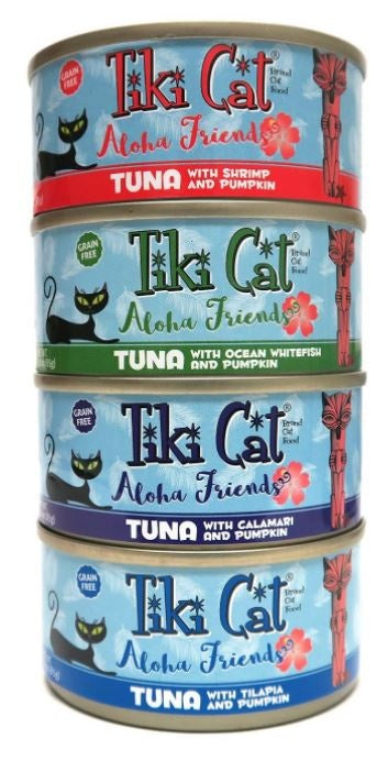 Shop / Unknown Type / Tiki Cat Aloha Friends Grain Free Variety Pack Canned Cat Food Tiki Cat Aloha Friends Grain Free Variety Pack Canned Cat Food Tiki Cat Weight: 3 oz, case of 12 $18.99 3-oz, case of 12 Purchase Options Free In-Store Pick Up Not Available Save 10% on orders $49+ Set your store for inventory and store pickup details Zip Code Search Same-day Delivery* No minimum charge for delivery orders. *Order before 2pm and have it delivered today. Orders placed after 2pm will be delivered the next day. Must be inside delivery radius. Zip Code Unfortunately delivery is not available to this address. In order to ensure the best availability accuracy, changing your selected store will remove all items from your cart. You will need to re-add these items with your newly selected store if you choose to continue. Continue Cancel Ship it to Me Quantity Add To Cart Feeding guide disclaimer ✕ Feeding guides provide a starting point for the amount of food to give your pet each day. We recommend that you keep your pet in ideal body condition and not allow them to become overweight. The amount of food your pet needs can vary based on age, activity level or other food and treats given, so be sure to work with your veterinarian to determine an appropriate weight for your pet, and to make any necessary adjustments to their feeding. Information 12-can Variety Pack featuring 4 Grain Free Flavors: 3 cans of Tuna with Tilapia and Pumpkin 3 cans of Tuna with Ocean Whitefish and Pumpkin 3 cans of Tuna with Shrimp and Pumpkin 3 cans of Tuna with Calamari and Pumpkin Made with whole fish & pumpkin, Tiki Cat® Aloha Friends™brand cat food provides a complete and balanced, and highly digestible diet for cats. -Fresh, Sustainably Sourced Ingredients that are GMO and Gluten Free -Wild Caught, Dolphin Safe Tuna, Mercury Tested for Safety -With Pumpkin, a High Moisture, Gentle Fiber, Rich in Antioxidants -Hand-Packed in Human-Grade Facilities -Complete & Balanced for All Life Stages -Grain Free Ingredients Tuna with Tilapia and Pumpkin Flaked tuna, tuna broth, pumpkin, tilapia, sunflower seed oil, calcium lactate, tricalcium phosphate, choline chloride, taurine, vitamin E supplement, zinc sulfate, thiamine mononitrate (vitamin B1), niacin (vitamin B3), calcium pantothenate, manganese sulfate, vitamin A supplement, potassium iodide, ferrous sulfate, riboflavin supplement (vitamin B2), pyridoxine hydrochloride (vitamin B6), copper sulfate, folic acid, vitamin B12 supplement. Tuna with Ocean Whitefish and Pumpkin Flaked tuna, tuna broth, pumpkin, ocean whitefish, sunflower seed oil, calcium lactate, tricalcium phosphate, choline chloride, taurine, vitamin E supplement, zinc sulfate, thiamine mononitrate (vitamin B1), niacin (vitamin B3), calcium pantothenate, manganese sulfate, vitamin A supplement, potassium iodide, ferrous sulfate, riboflavin supplement (vitamin B2), pyridoxine hydrochloride (vitamin B6), copper sulfate, folic acid, vitamin B12 supplement. Tuna with Shrimp and Pumpkin Flaked tuna, tuna broth, pumpkin, shrimp, sunflower seed oil, calcium lactate, tricalcium phosphate, choline chloride, taurine, vitamin E supplement, zinc sulfate, thiamine mononitrate (vitamin B1), niacin (vitamin B3), calcium pantothenate, manganese sulfate, vitamin A supplement, potassium iodide, ferrous sulfate, riboflavin supplement (vitamin B2), pyridoxine hydrochloride (vitamin B6), copper sulfate, folic acid, vitamin B12 supplement Tuna with Calamari and Pumpkin Flaked tuna, tuna broth, pumpkin, calamari, sunflower seed oil, calcium lactate, tricalcium phosphate, choline chloride, taurine, vitamin E supplement, zinc sulfate, thiamine mononitrate vitamin B1), niacin (vitamin B3), calcium pantothenate, manganese sulfate, vitamin A supplement, potassium iodide, ferrous sulfate, riboflavin supplement (vitamin B2), pyridoxine hydrochloride (vitamin B6), copper sulfate, folic acid, vitamin B12 supplement Customers also liked Customer Reviews