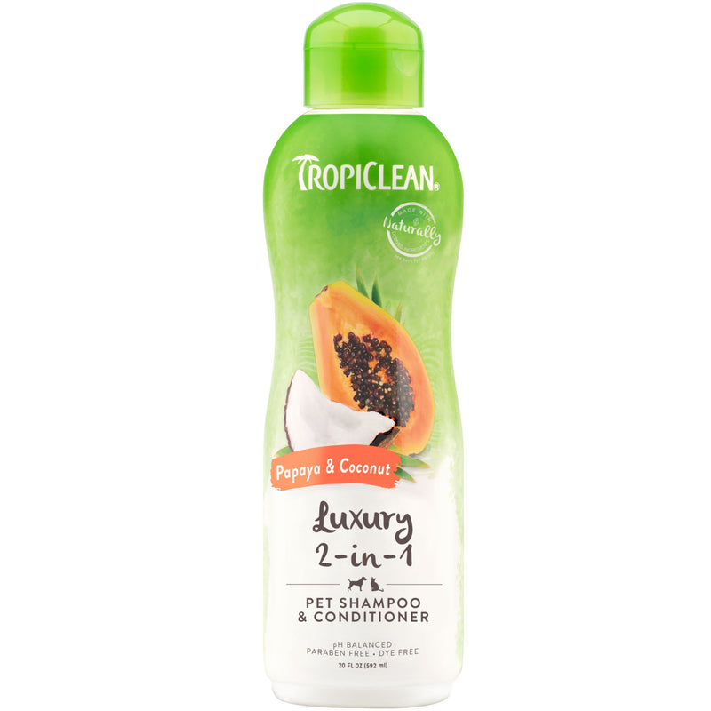 Shop / Unknown Type / TropiClean Papaya & Coconut Luxury 2-in-1 Shampoo and Conditioner for Pets, 20oz TropiClean Papaya & Coconut Luxury 2-in-1 Shampoo and Conditioner for Pets, 20oz TropiClean 20oz $14.99 20oz Purchase Options Free In-Store Pick Up Not Available Save 10% on orders $49+ Set your store for inventory and store pickup details Zip Code Search Same-day Delivery* No minimum charge for delivery orders. *Order before 2pm and have it delivered today. Orders placed after 2pm will be delivered the next day. Must be inside delivery radius. Zip Code Unfortunately delivery is not available to this address. In order to ensure the best availability accuracy, changing your selected store will remove all items from your cart. You will need to re-add these items with your newly selected store if you choose to continue. Continue Cancel Ship it to Me Quantity Add To Cart Information TropiClean Papaya & Coconut Luxury 2-in-1 Dog & Cat Shampoo & Conditioner cleanses, moisturizes and conditions your pet’s skin and coat. This luxurious dog wash helps relax tangled hair for easier brushing, leaving their coat soft and healthy. The sweet scent of papaya and coconut will leave them smelling fresh and ready for cuddles! TropiClean Pet Products are cruelty free. Ingredients: Water, Mild Coconut Cleanser, Sodium Chloride, Colloidal Oatmeal, Hydrolyzed Wheat Protein, Botanical Blend Of (Papaya Extract, Kiwi Extract, Mango Extract, Pomegranate Extract, Yucca Extract, Chamomile Extract, Aloe Extract), Vitamin E, Fragrance, Preservative. Customers also liked Customer Reviews