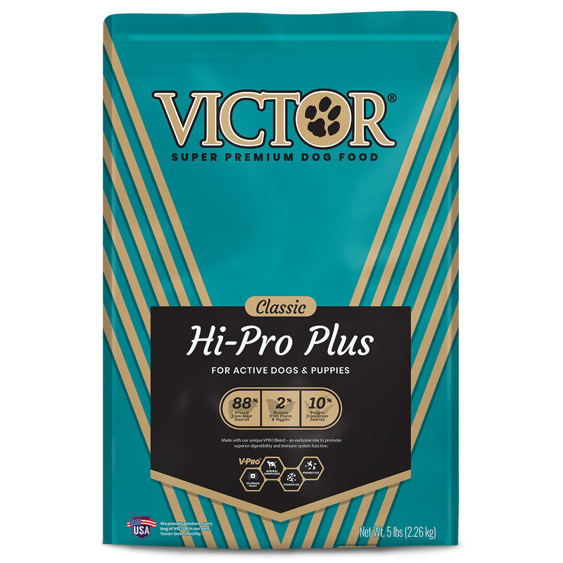 Shop / Unknown Type / Victor Hi Pro Plus Dry Dog Food, 5lb Victor Hi Pro Plus Dry Dog Food, 5lb Victor 5lb $14.99 5lb Purchase Options Free In-Store Pick Up Not Available Save 10% on orders $49+ Set your store for inventory and store pickup details Zip Code Search Same-day Delivery* No minimum charge for delivery orders. *Order before 2pm and have it delivered today. Orders placed after 2pm will be delivered the next day. Must be inside delivery radius. Zip Code Unfortunately delivery is not available to this address. In order to ensure the best availability accuracy, changing your selected store will remove all items from your cart. You will need to re-add these items with your newly selected store if you choose to continue. Continue Cancel Ship it to Me Quantity Add To Cart Feeding guide disclaimer ✕ Feeding guides provide a starting point for the amount of food to give your pet each day. We recommend that you keep your pet in ideal body condition and not allow them to become overweight. The amount of food your pet needs can vary based on age, activity level or other food and treats given, so be sure to work with your veterinarian to determine an appropriate weight for your pet, and to make any necessary adjustments to their feeding. Information This nutrient-dense, multi-protein formula provides high levels of quality protein to support the nutritional needs of growing puppies, pregnant and lactating females, and high-performing dogs. With scientifically advanced and nutritionally complete ingredients, this formula promotes sustained energy and healthy immune and digestive systems.VICTOR Hi-Pro Plus for Dogs is formulated to meet the nutritional levels established by the AAFCO Dog Food Nutrient Profiles for All Life Stages, except for growth of large size dogs (70 lb. or more as an adult.) This nutrient-dense recipe is made with premium-quality beef, chicken, pork and fish meals to provide sustained energy Excellent for dogs that need high levels of quality protein, like growing puppies and pregnant or nursing females Fortified with vitamins, minerals, essential fatty acids, protein and amino acids Made with our unique VPRO Blend - an exclusive mix to promote superior digestibility and immune system function Ideal for dogs with allergies to other meat proteins Made from gluten free grains Ingredients Beef Meal, Grain Sorghum, Chicken Fat (preserved with mixed Tocopherols), Pork Meal, Chicken Meal, Menhaden Fish Meal (source of DHA-Docosahexaenoic Acid), Blood Meal Conventionally Dried, Whole Grain Millet, Dehydrated Alfalfa Meal, Yeast Culture, Natural Flavor, Potassium Chloride, Carrot Powder, Tomato Pomace, Salt, Organic Dried Seaweed Meal, Taurine, Choline Chloride, Calcium Stearate, Zinc Methionine Complex, Vitamin E Supplement, DL-Methionine, Iron Amino Acid Complex, Hydrolyzed Yeast, Manganese Amino Acid Complex, Silicon Dioxide, L-Carnitine, Selenium Yeast, Brewers Dried Yeast, Copper Sulfate, Niacin Supplement, Vitamin B12 Supplement, Vitamin A Supplement, D-Calcium Pantothenate, Mono and Diglycerides of Fatty Acids, Thiamine Mononitrate, Biotin, Yucca Schidigera Extract, Calcium Carbonate, Riboflavin Supplement, Calcium Iodate, Pyridoxine Hydrochloride, Vitamin D3 Supplement, Tetrasodium Pyrophosphate, Rosemary Extract, Green Tea Extract, Spearmint Extract, Inulin, Lecithin, Folic Acid, Dried Bacillus coagulans Fermentation Product, Dried Bacillus subtilis Fermentation Product Contains a source of live (viable), naturally occurring microorganisms Guaranteed Analysis Crude Protein (Min.) 30.0% Crude Fat (Min.) 20.0% Crude Fiber (Max.) 3.8% Moisture (Max.) 9.0% Linoleic Acid (Min.) 2.6% alpha-Linolenic Acid (Min.) 0.4% DHA (Min.) 0.1% Zinc (Min.) 150 mg/kg Selenium (Min.) 0.35 mg/kg Vitamin E (Min.) 150 IU/kg L-Carnitine* (Min.) 100 mg/kg Total Microorganisms* (Min) 80,000,000 CFU/lb (Bacillus coagulans, Bacillus subtilis ) Customers also liked Customer Reviews