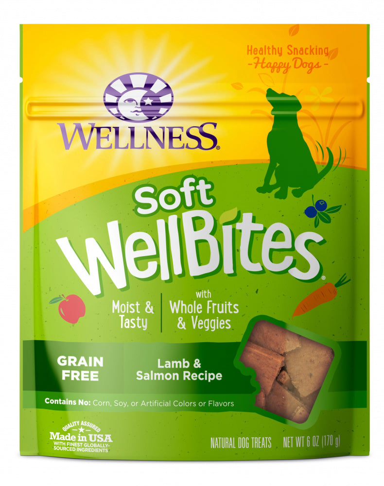 Shop / Unknown Type / Wellness Rewarding Life Lamb & Salmon Recipe Dog Treats, 6 oz. Bag Wellness Rewarding Life Lamb & Salmon Recipe Dog Treats, 6 oz. Bag Wellness Weight: 6 oz $9.39 6-oz Purchase Options Free In-Store Pick Up Not Available Save 10% on orders $49+ Set your store for inventory and store pickup details Zip Code Search Same-day Delivery* No minimum charge for delivery orders. *Order before 2pm and have it delivered today. Orders placed after 2pm will be delivered the next day. Must be inside delivery radius. Zip Code Unfortunately delivery is not available to this address. In order to ensure the best availability accuracy, changing your selected store will remove all items from your cart. You will need to re-add these items with your newly selected store if you choose to continue. Continue Cancel Ship it to Me Quantity Add To Cart Feeding guide disclaimer ✕ Feeding guides provide a starting point for the amount of food to give your pet each day. We recommend that you keep your pet in ideal body condition and not allow them to become overweight. The amount of food your pet needs can vary based on age, activity level or other food and treats given, so be sure to work with your veterinarian to determine an appropriate weight for your pet, and to make any necessary adjustments to their feeding. Information Wellness® Rewarding Life Soft & Chewy Healthy Dog Treats are wholesome, healthy, soft, tasty, bite-sized dog treats made in USA only. Wellness Pet Food offers a variety of products for your pets needs including dry dog food, wet dog food, dog food toppers, dog treats, dental chews, dry cat food, wet cat food, and cat treats Ingredients Lamb, Salmon, Chickpeas, Ground Potatoes, Vegetable Glycerin, Guar Gum, Carrots, Cane Molasses, Salt, Natural Smoke Flavor, Blueberries, Garlic Powder, Flaxseed, Phosphoric Acid, Sweet Potatoes, Apples, Sorbic Acid (a preservative), Mixed Tocopherols added to preserve freshness, Rosemary Extract, Green Tea Extract, Spearmint Extract. Guaranteed Analysis Nutrient Guaranteed Units Crude Protein 14% min Crude Fat 16% min Crude Fiber 2% max Moisture 30% max Customers also liked Customer Reviews