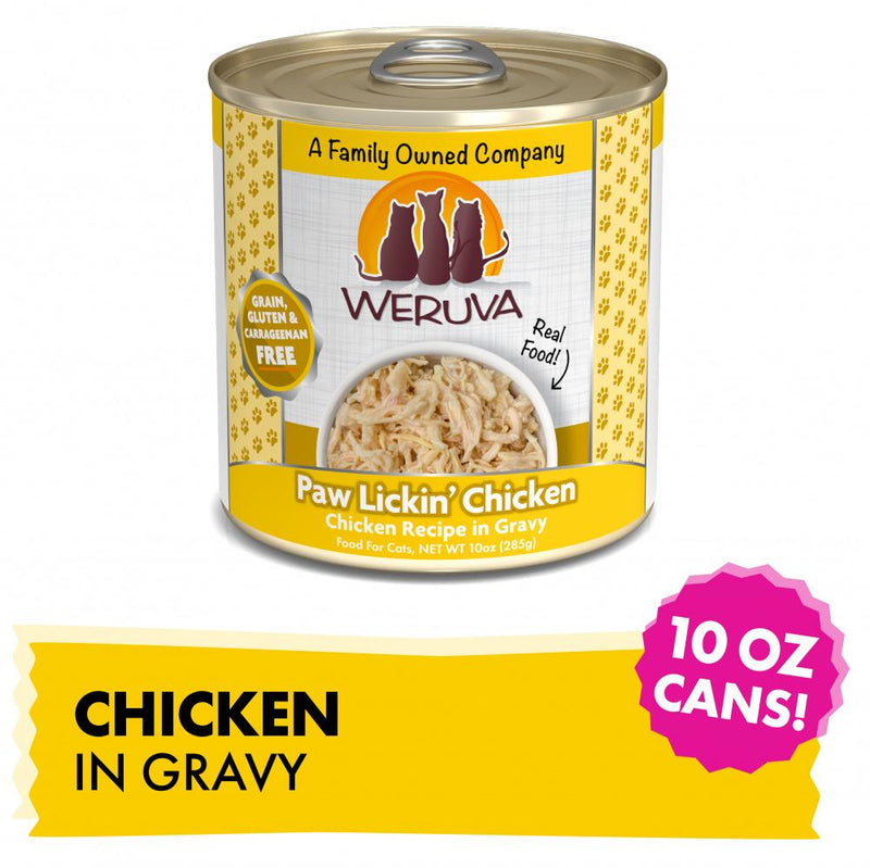 Shop / Grain-Free / Weruva Grain Free Paw Lickin' Chicken Canned Cat Food Weruva Grain Free Paw Lickin' Chicken Canned Cat Food Weruva Weight: 10 oz, case of 12 $59.99 10-oz, case of 12 Purchase Options Free In-Store Pick Up Not Available Save 10% on orders $49+ Set your store for inventory and store pickup details Zip Code Search Same-day Delivery* No minimum charge for delivery orders. *Order before 2pm and have it delivered today. Orders placed after 2pm will be delivered the next day. Must be inside delivery radius. Zip Code Unfortunately delivery is not available to this address. In order to ensure the best availability accuracy, changing your selected store will remove all items from your cart. You will need to re-add these items with your newly selected store if you choose to continue. Continue Cancel Ship it to Me Quantity Add To Cart Feeding guide disclaimer ✕ Feeding guides provide a starting point for the amount of food to give your pet each day. We recommend that you keep your pet in ideal body condition and not allow them to become overweight. The amount of food your pet needs can vary based on age, activity level or other food and treats given, so be sure to work with your veterinarian to determine an appropriate weight for your pet, and to make any necessary adjustments to their feeding. Information Simple, delicious, and paw lickin' good. No vegetables, grains, GMOs, MSG, and carrageenan, your little carnivore will be lickin it's paws once it gets a taste of the Weruva Paw Lickin' Chicken Canned Cat Food. Weruva's Paw Lickin' Chicken Canned Cat Food is full of whole, boneless, skinless, and cage-free chicken breast, free of hormones, and added antibiotics for a happy and healthy kitty. This simple meal is an easily identifiable food as the only protein provided is the delicious shredded chicken. Why We Love It Grain, GMO, MSG and Carrageenan free Full of sustainable protein. Cage free chicken breast for your little carnivore About WeruvaWe proudly present WeRuVa, a luxurious, natural pet food inspired by and named after our three rescued cats, Webster, Rudi and Vanessa. With our search for “The Best Cat Food Under the Sun” never seeming to end, we thought, “Let's give it a shot ourselves…” so we gathered the best ingredients from around the world, formulated some fantastic recipes and created it ourselves. Naturally, when we were lucky enough to have our rescued dog Baron enter our family, we decided to expand our products to include dog food. Our formulas are produced in a human food facility using many of the ingredients and processes that are used in products made for people. Our base proteins of chicken, beef and fish include only top quality muscle meat, such as white breast chicken, whole tuna loins and select cuts of beef. Then we add fresh vegetables and other unique items such as Grilled skipjack, tilapia and red bigeye tuna, as well as calamari and shirasu. Our ingredients maintain a natural look and recognizable texture which allows the pet owner to see and understand the ingredients…so what you see is what you get! We hope your furry friends love Weruva as much as Webster, Rudi, Vanessa and Baron do! Ingredients Chicken (Boneless, Skinless Breast), Chicken Broth, Potato Starch, Sunflower Seed Oil, Calcium Lactate, Xanthan Gum, Tricalcium Phosphate, Choline Chloride, Taurine, Zinc Sulfate, Vitamin E Supplement, Ferrous Sulfate, Nicotinic Acid (Vitamin B3), Thiamine Mononitrate (Vitamin B1), Calcium Pantothenate, Copper Sulfate, Riboflavin Supplement (Vitamin B2), Pyridoxine Hydrochloride (Vitamin B6), Vitamin A Supplement, Manganese Sulfate, Vitamin D3 Supplement, Folic Acid, Potassium Iodide, Sodium Selenite, Biotin, Vitamin B12 Supplement Guaranteed Analysis Nutrient Guaranteed Units Crude Protein 10.0% min Crude Fat 1.40% min Crude Fiber 0.50% max Moisture 85% max Ash 1.20% max Taurine 0.05% min Calcium 0.20% max Magnesium 0.018% max Customers also liked Customer Reviews