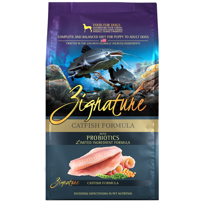Shop / Unknown Type / Zignature Catfish Formula Dry Dog Food, 25lb Zignature Catfish Formula Dry Dog Food, 25lb Zignature 25lb $70.99 25lb Purchase Options Free In-Store Pick Up Not Available Save 10% on orders $49+ Set your store for inventory and store pickup details Zip Code Search Same-day Delivery* No minimum charge for delivery orders. *Order before 2pm and have it delivered today. Orders placed after 2pm will be delivered the next day. Must be inside delivery radius. Zip Code Unfortunately delivery is not available to this address. In order to ensure the best availability accuracy, changing your selected store will remove all items from your cart. You will need to re-add these items with your newly selected store if you choose to continue. Continue Cancel Ship it to Me Quantity Add To Cart Feeding guide disclaimer ✕ Feeding guides provide a starting point for the amount of food to give your pet each day. We recommend that you keep your pet in ideal body condition and not allow them to become overweight. The amount of food your pet needs can vary based on age, activity level or other food and treats given, so be sure to work with your veterinarian to determine an appropriate weight for your pet, and to make any necessary adjustments to their feeding. Information This formula is naturally high in protein, healthy fats and muscle-building amino acids. This high-protein formula is a good way to maintain lean muscle mass and has a great taste your dog will love. Ingredients Ingredients: Catfish, Catfish Meal, Peas, Pea Flour, Chickpeas, Sunflower Oil, Natural Flavor, Flaxseed, Salt, Calcium Carbonate, Choline Chloride, Tricalcium Phosphate, Vitamins (Vitamin E Supplement, Vitamin A Supplement, Niacinamide, d-Calcium Pantothenate, Riboflavin, Thiamine Mononitrate, Vitamin B12 Supplement, Pyridoxine Hydrochloride, Folic Acid, Biotin), Minerals (Zinc Proteinate, Iron Proteinate, Copper Proteinate, Sodium Selenite, Manganese Proteinate, Calcium Iodate), Taurine, Potassium Chloride, Mixed Tocopherols (Preservative), L-Carnitine, Rosemary Extract, Dried Bacillus Coagulans Fermentation Product, Dried Bacillus Subtilis Fermentation Product, Dried Bifidobacterium Bifidum Fermentation Product. Guaranteed Analysis Guaranteed Analysis: Crude protein (min)30.5%Crude fat (min)13.0%Crude fiber (max)4.5%Moisture (max)10%Omega 6 fatty acids* (min)2.7%Omega 3 fatty acids* (min)2.2%Taurine* (min)0.2%L-Carnitine* (MIN)40mg/kg Customers also liked Customer Reviews