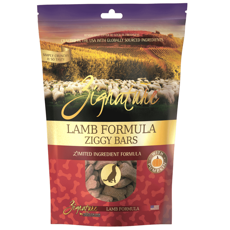 Shop / Unknown Type / Zignature Lamb Biscuit Treats For Dog, 12oz Zignature Lamb Biscuit Treats For Dog, 12oz Zignature 12oz $9.99 12oz Purchase Options Free In-Store Pick Up Not Available Save 10% on orders $49+ Set your store for inventory and store pickup details Zip Code Search Same-day Delivery* No minimum charge for delivery orders. *Order before 2pm and have it delivered today. Orders placed after 2pm will be delivered the next day. Must be inside delivery radius. Zip Code Unfortunately delivery is not available to this address. In order to ensure the best availability accuracy, changing your selected store will remove all items from your cart. You will need to re-add these items with your newly selected store if you choose to continue. Continue Cancel Ship it to Me Quantity Add To Cart Feeding guide disclaimer ✕ Feeding guides provide a starting point for the amount of food to give your pet each day. We recommend that you keep your pet in ideal body condition and not allow them to become overweight. The amount of food your pet needs can vary based on age, activity level or other food and treats given, so be sure to work with your veterinarian to determine an appropriate weight for your pet, and to make any necessary adjustments to their feeding. Information Zignature Lamb Ziggy Bars make training time more fun! These tasty treats are formulated with the same limited ingredient philosophy as our dry and canned foods and include healthy, wholesome ingredients like pumpkin to make treat time much more enjoyable for you and your furry friend! Customers also liked Customer Reviews