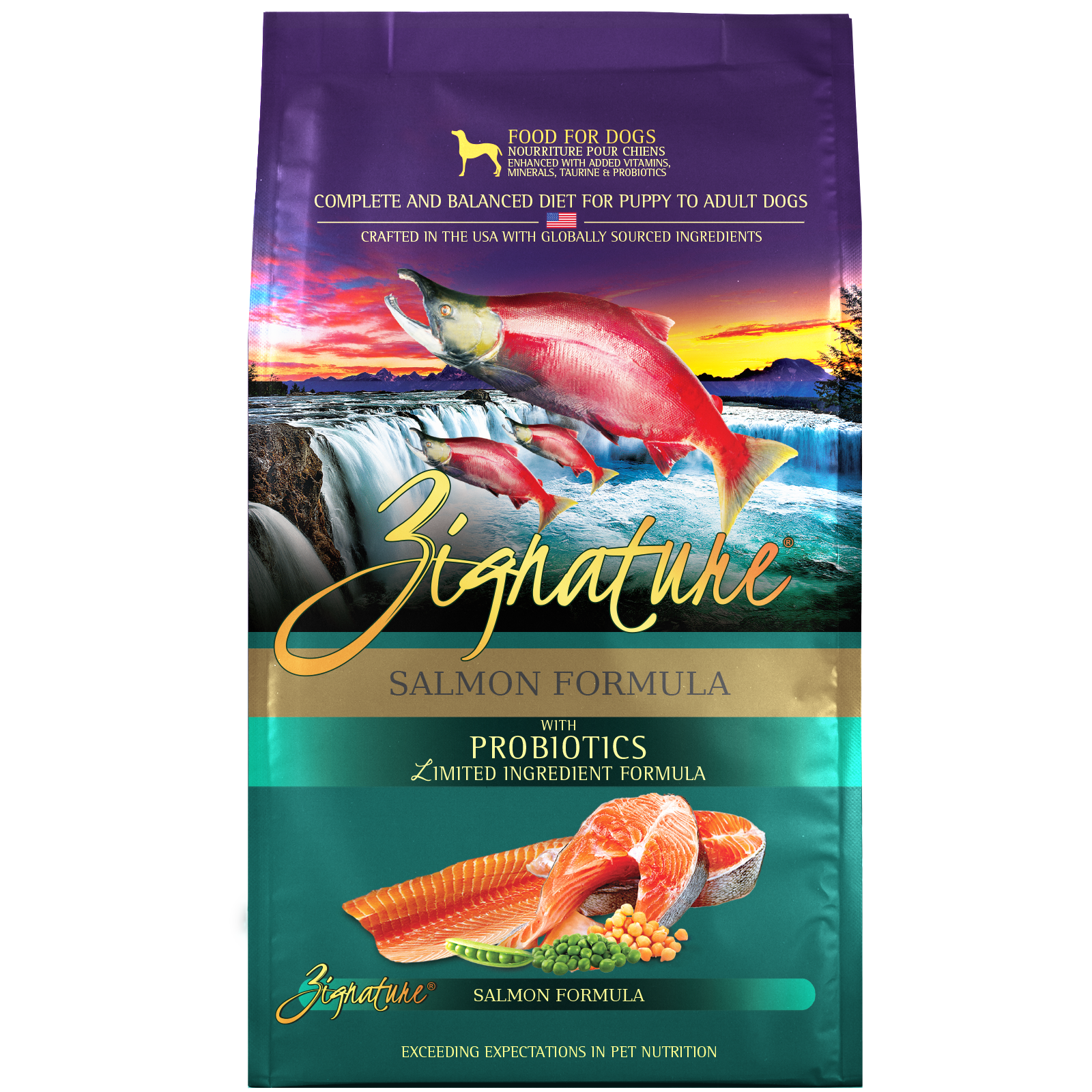 Shop / Unknown Type / Zignature Salmon Formula Dry Dog Food, 4lb Zignature Salmon Formula Dry Dog Food, 4lb Zignature 4lb $16.99 4lb Purchase Options Free In-Store Pick Up Not Available Save 10% on orders $49+ Set your store for inventory and store pickup details Zip Code Search Same-day Delivery* No minimum charge for delivery orders. *Order before 2pm and have it delivered today. Orders placed after 2pm will be delivered the next day. Must be inside delivery radius. Zip Code Unfortunately delivery is not available to this address. In order to ensure the best availability accuracy, changing your selected store will remove all items from your cart. You will need to re-add these items with your newly selected store if you choose to continue. Continue Cancel Ship it to Me Quantity Add To Cart Feeding guide disclaimer ✕ Feeding guides provide a starting point for the amount of food to give your pet each day. We recommend that you keep your pet in ideal body condition and not allow them to become overweight. The amount of food your pet needs can vary based on age, activity level or other food and treats given, so be sure to work with your veterinarian to determine an appropriate weight for your pet, and to make any necessary adjustments to their feeding. Information Salmon is a fish loaded with heart-healthy Omega-3 fatty acids and lean protein for building muscle and maintaining strong bones. We fortify our formula with plenty of antioxidants and low glycemic carbohydrates for a healthy, satisfied dog. Ingredients Ingredients: Salmon, Salmon Meal, Peas, Pea Flour, Chickpeas, Sunflower Oil, Flaxseed, Dehydrated Alfalfa Meal, Natural Flavor, Dicalcium Phosphate, Salt, Choline Chloride, Vitamins (Vitamin E Supplement, Vitamin A Supplement, Niacinamide, d-Calcium Pantothenate, Riboflavin, Thiamine Mononitrate, Vitamin B12 Supplement, Pyridoxine Hydrochloride, Folic Acid, Biotin), Taurine, Minerals (Zinc Proteinate, Iron Proteinate, Copper Proteinate, Sodium Selenite, Manganese Proteinate, Calcium Iodate), Potassium Chloride, Mixed Tocopherols (Preservative), L-Carnitine, Rosemary Extract, Dried Bacillus Coagulans Fermentation Product, Dried Bacillus Subtilis Fermentation Product, Dried Bifidobacterium Bifidum Fermentation Product. Guaranteed Analysis Guaranteed Analysis: Crude protein (min)29%Crude fat (min)14.5%Crude fiber (max)5%Moisture (max)10%Omega 6 fatty acids* (min)2.8%Omega 3 fatty acids* (min)2.8%Taurine* (min)0.2%L-Carnitine* (MIN)40mg/kg Customers also liked Customer Reviews